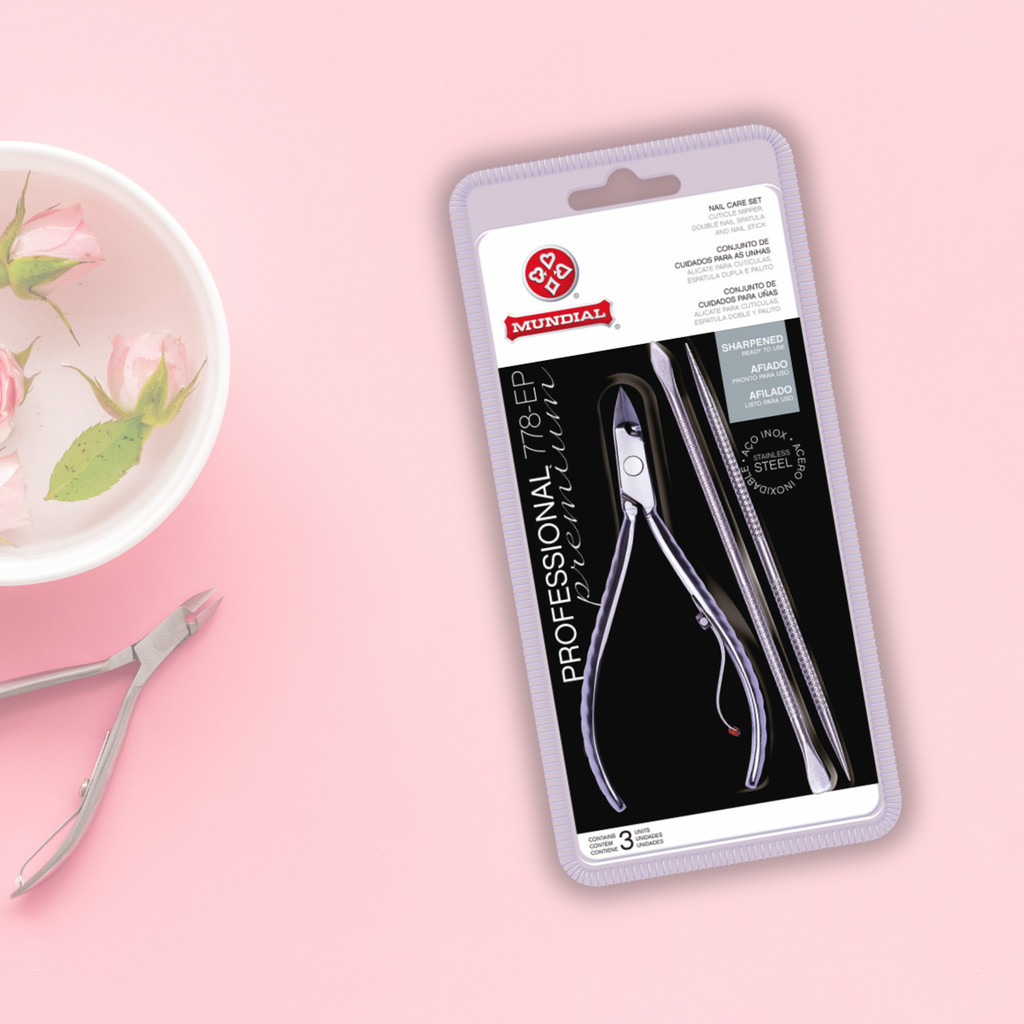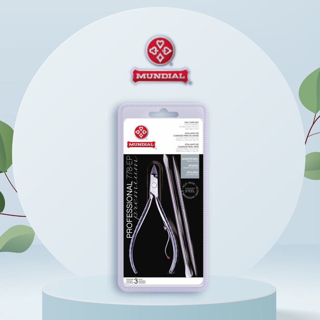 Alicate cuticula 778-ep com espatula dupla e palito professional premium inox mundial