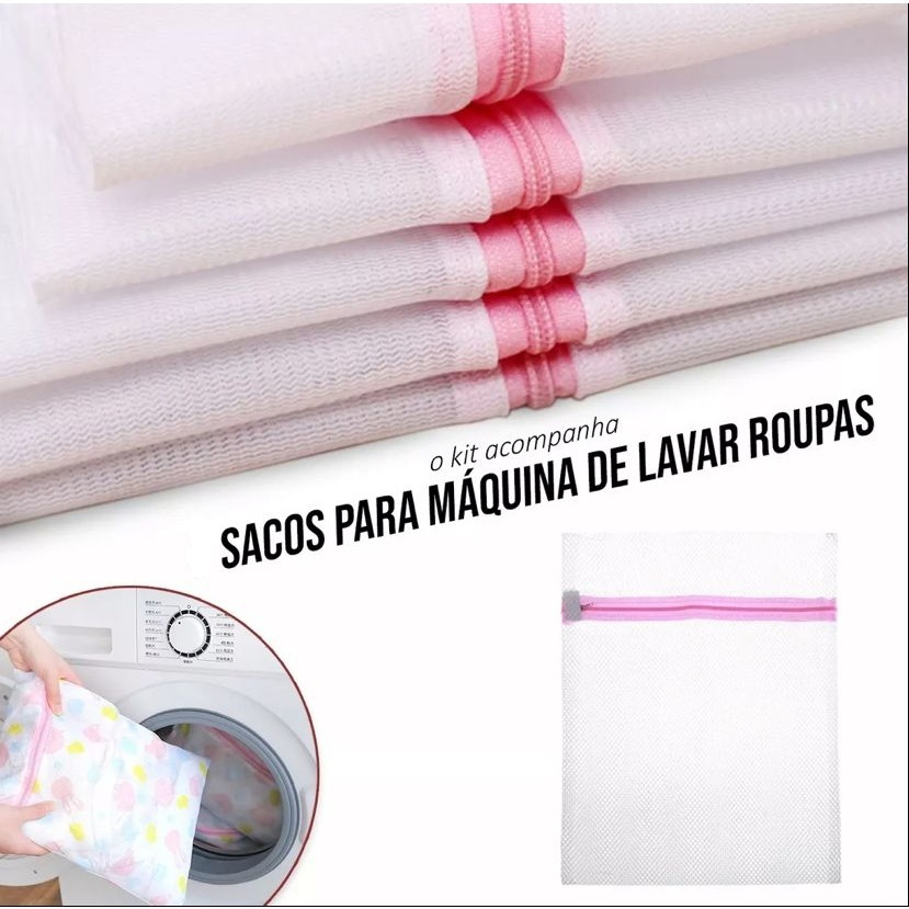 Kit Sacos Protetores para Lavar Roupas Rede Lavanderia 35x45cm Cuida Lingerie e Evita Bolinhas