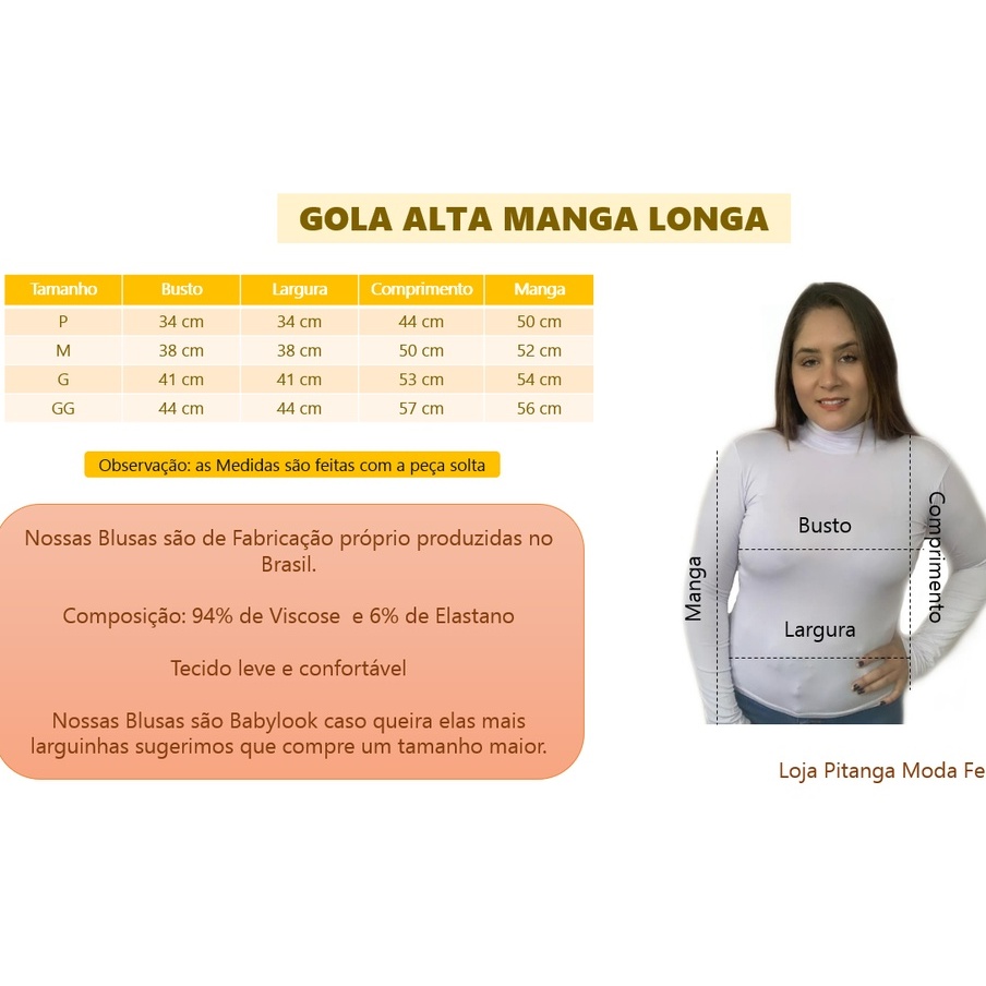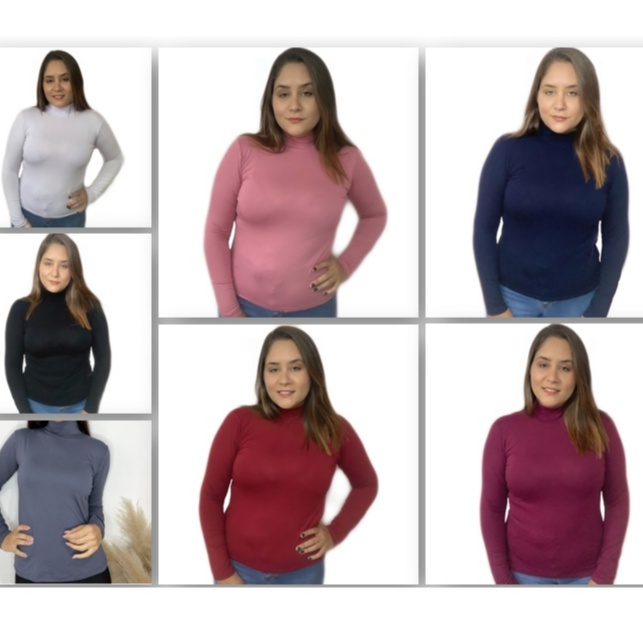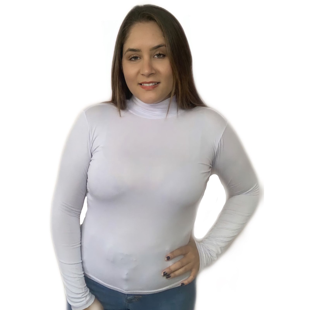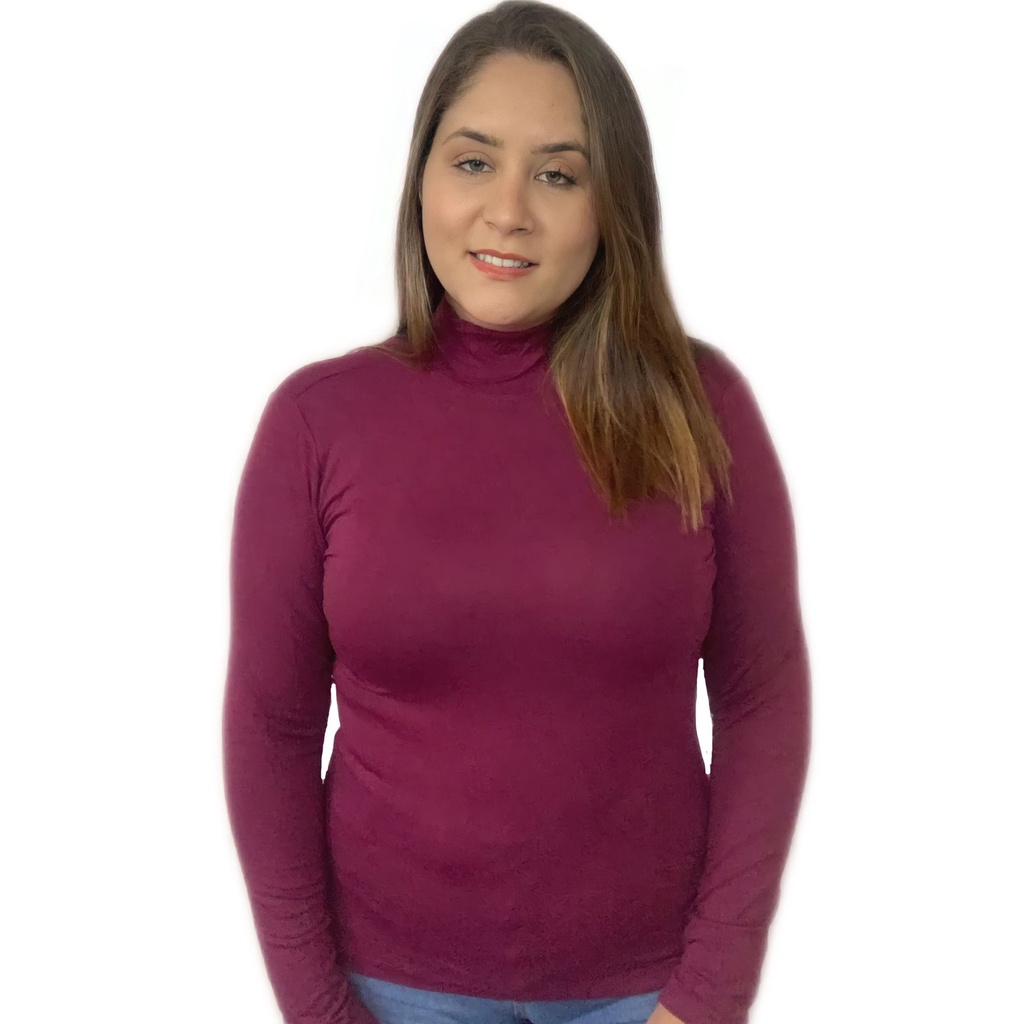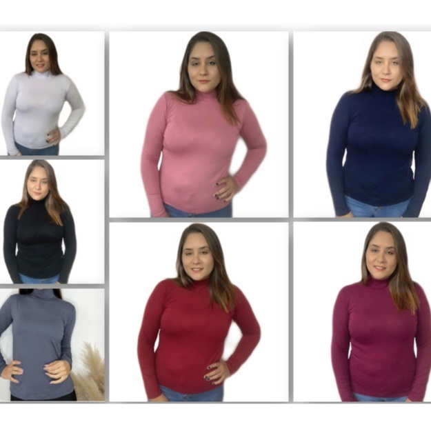 Kit 3 Blusas Femininas Gola Alta Manga Longa