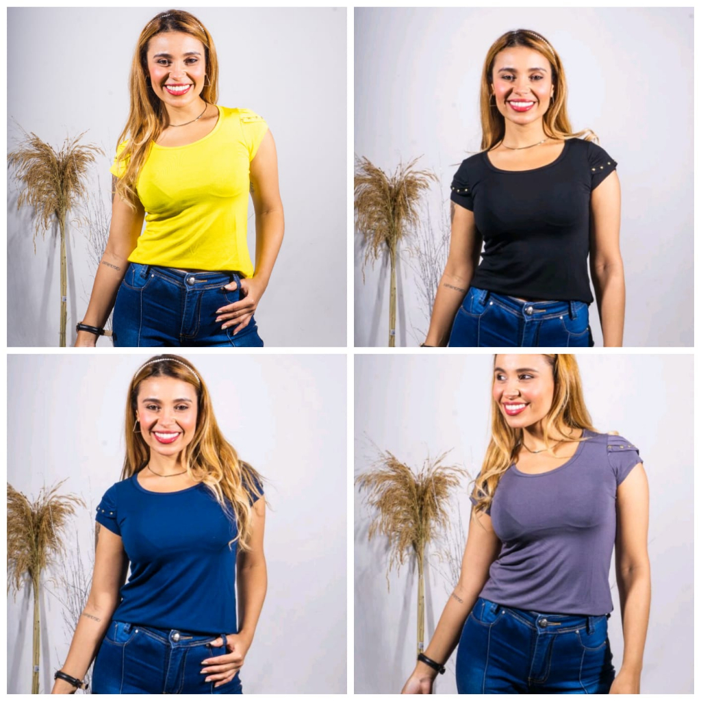 Kit 4 Blusas Femininas Manga Dupla com Spike