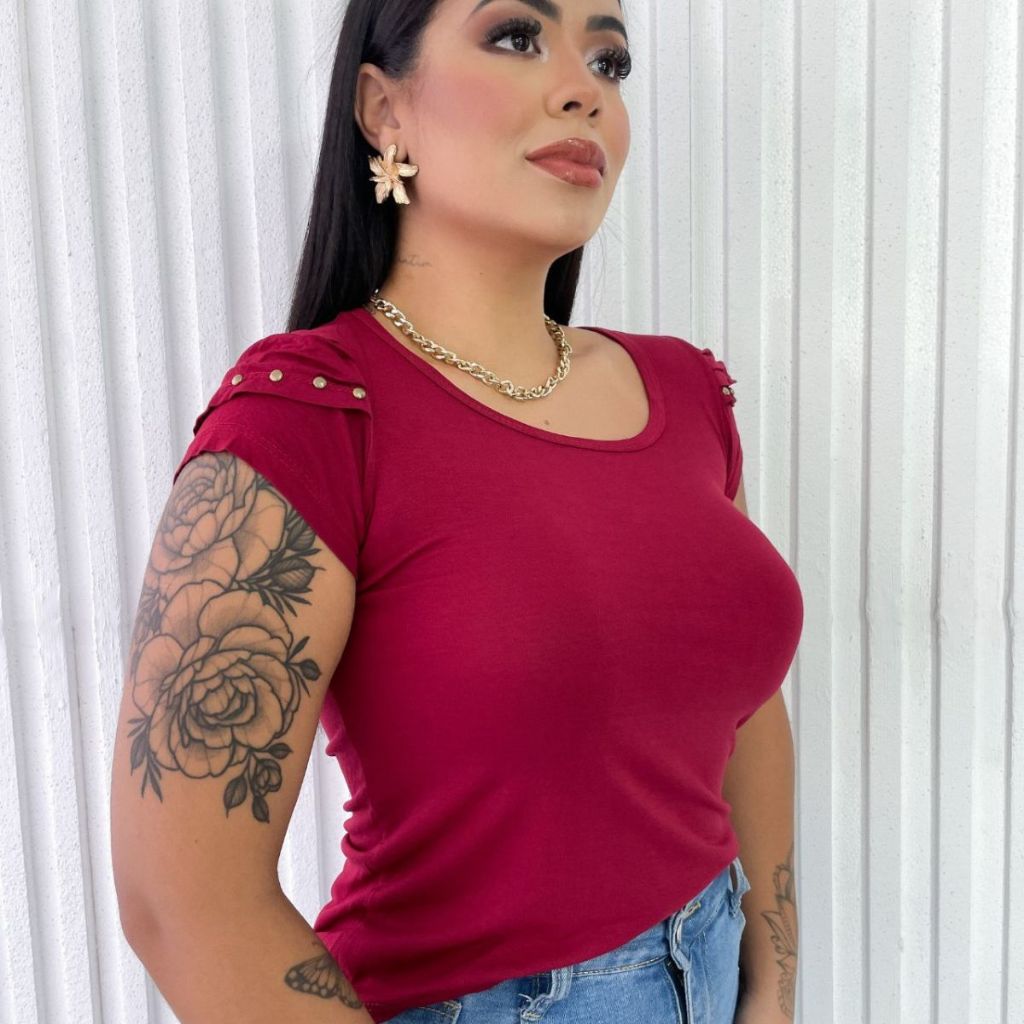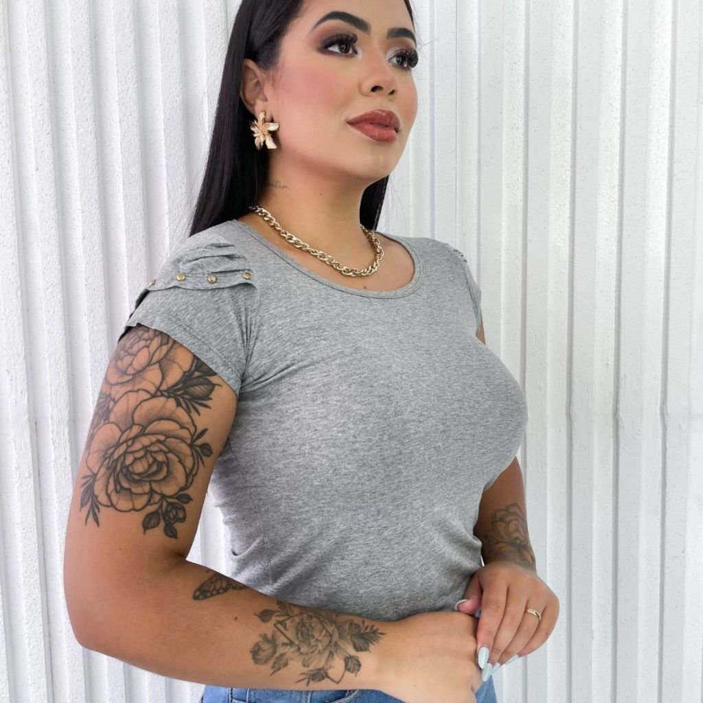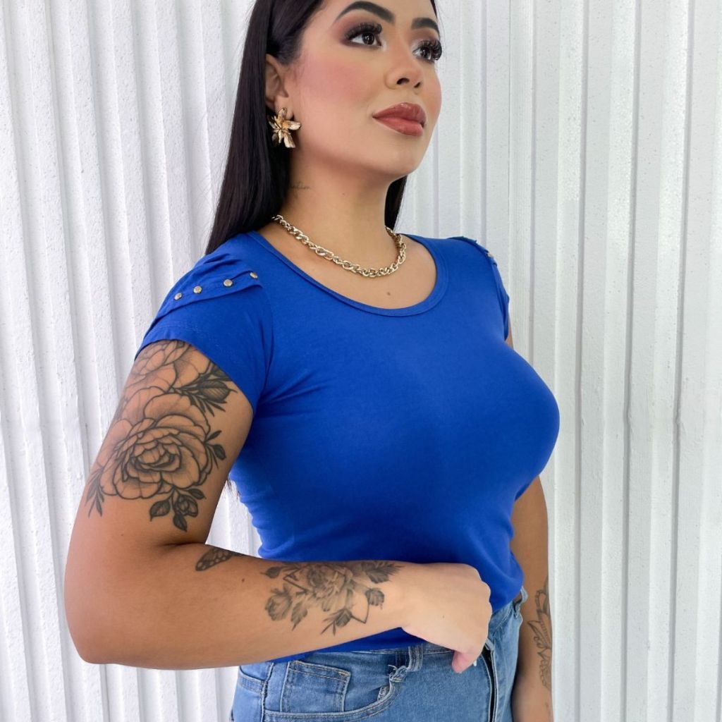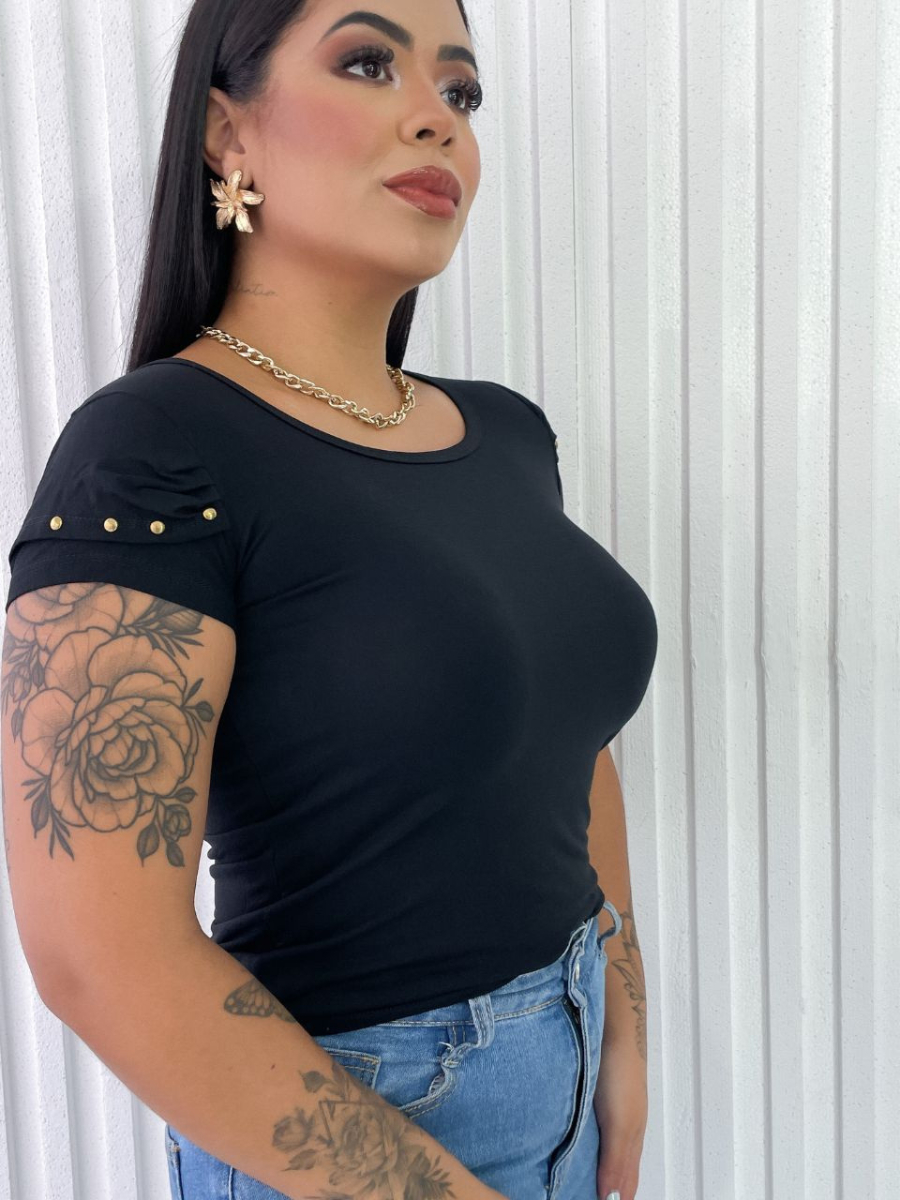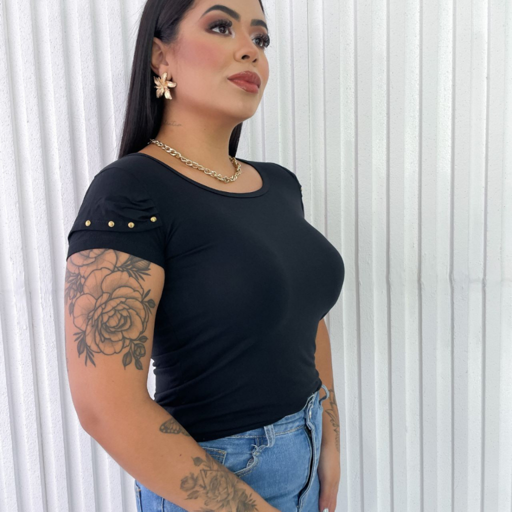Blusa Feminina Básica com Detalhes nas Mangas Evangélica