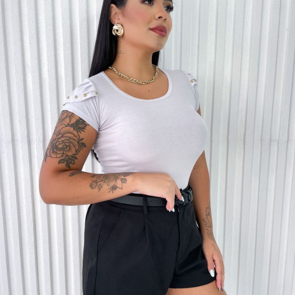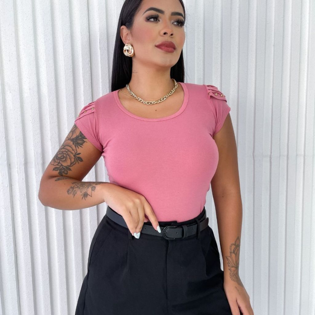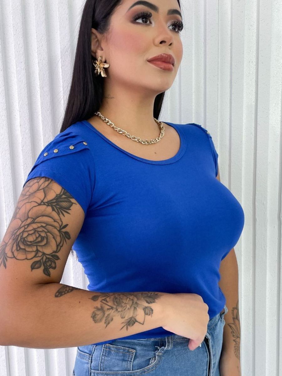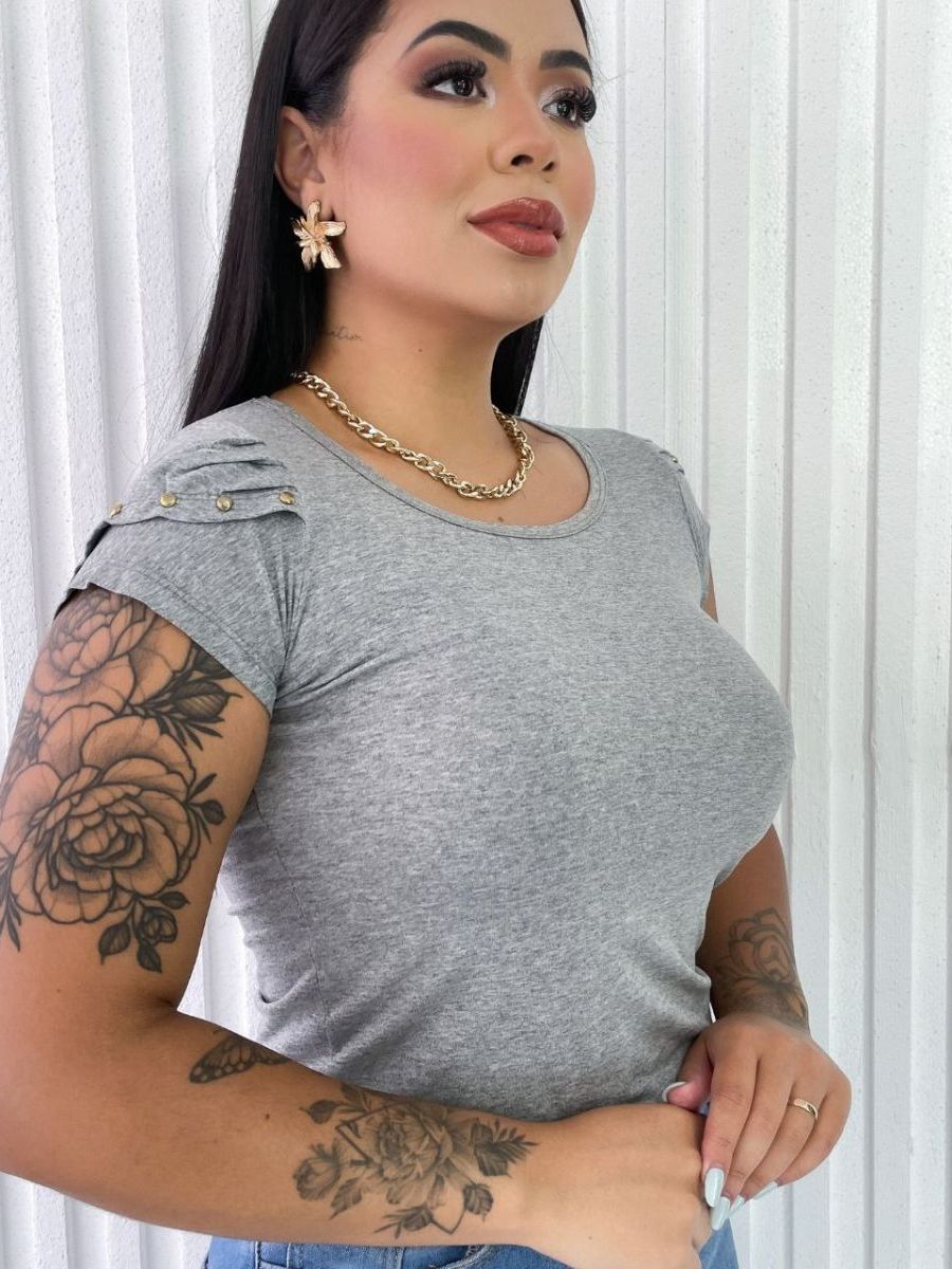 Blusa Feminina Básica com Detalhes nas Mangas Evangélica