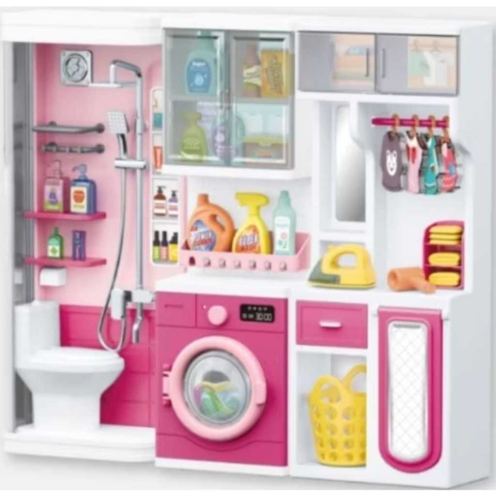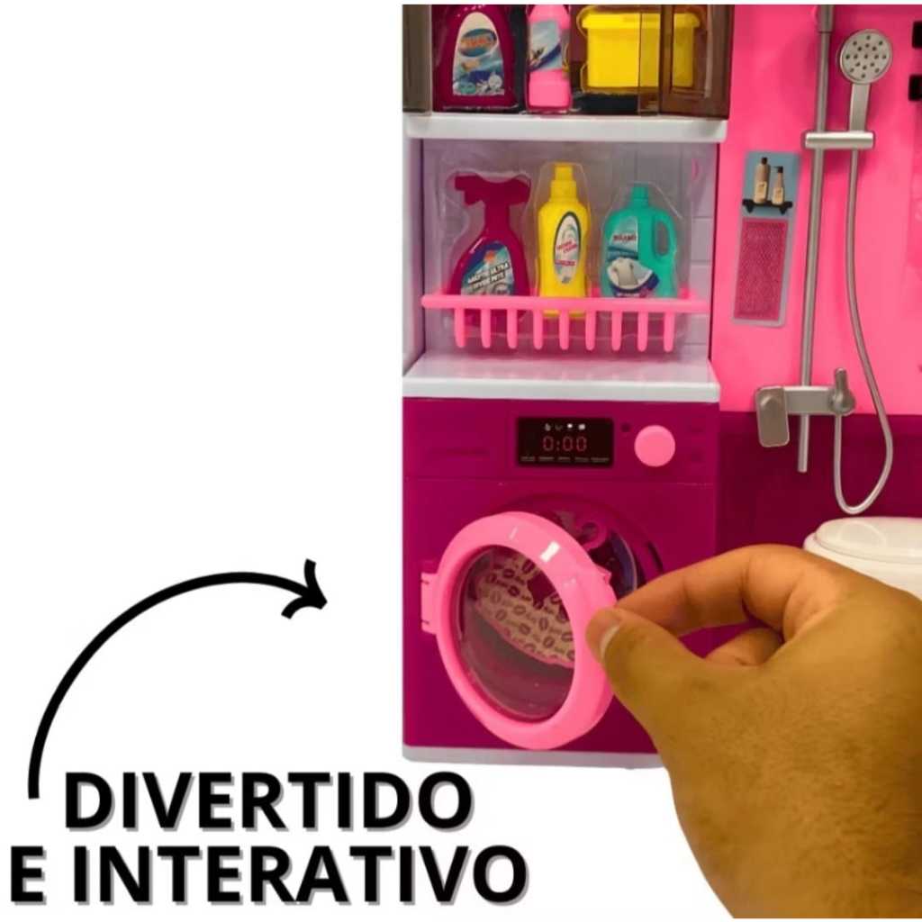 Casa De Boneca Infantil Banheiro E Lavanderia Com Acessórios E Utensílios Interativa Luz E Som