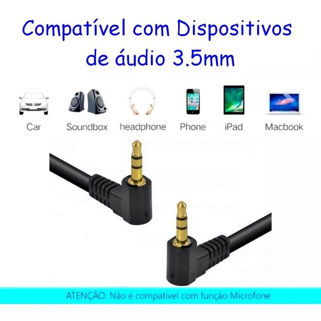 Cabo Audio Som Auxiliar P2 X P2 Estereo 90º Graus L 1.5 Metros