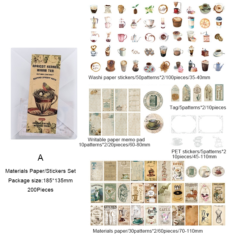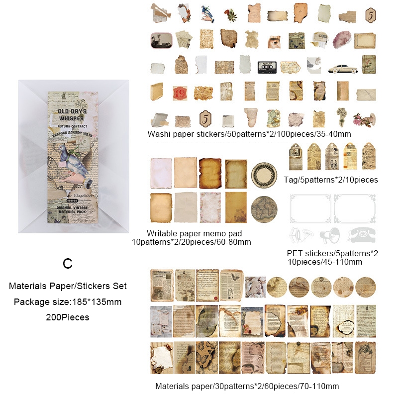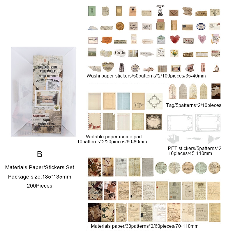 Journamm 200pcs/Embalagem Decoração Livro De Recortes PET Materiais Adesivos Papel Combo Kit DIY Junk Diário Vintage Collage Photo Album