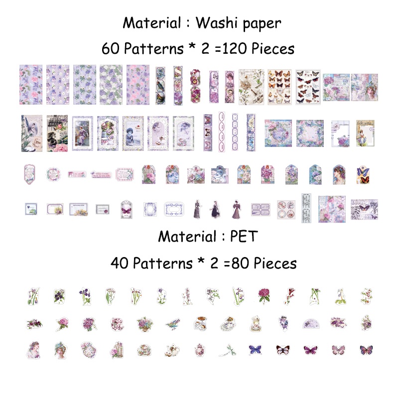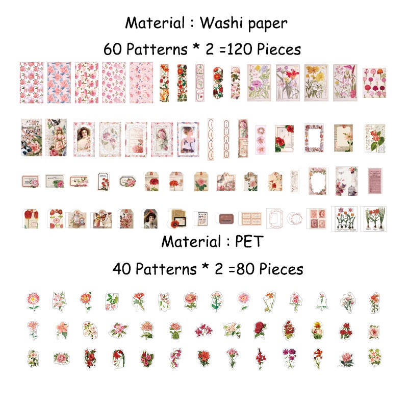 Journamm 200pçs/Pacote Decoração Adesivos Materiais Papel Combo Kit Colagem Junk Diário DIY Scrapbooking Arte Suprimentos De Flores