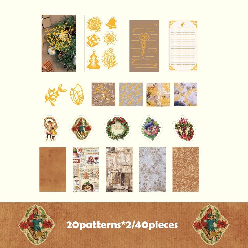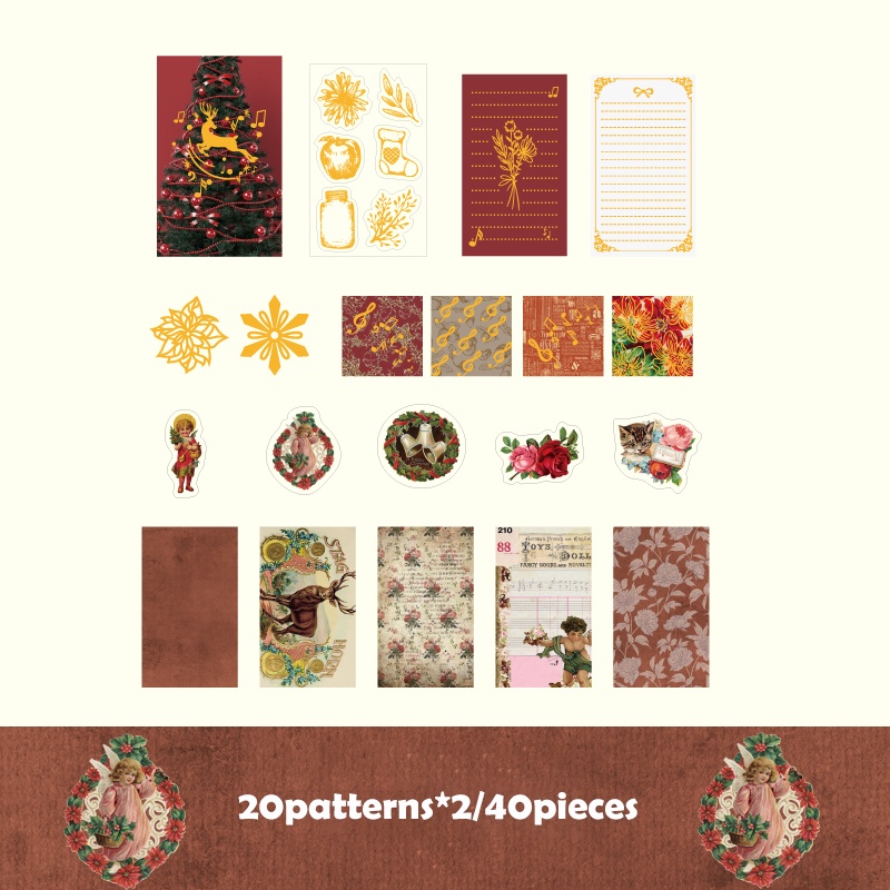 Journamm 40pcs/Pacote Decoração Estilo Natal Scrapbooking PET Adesivos Litmus Paper Combo Kit Colagem Junk Diário Artesanal Deco
