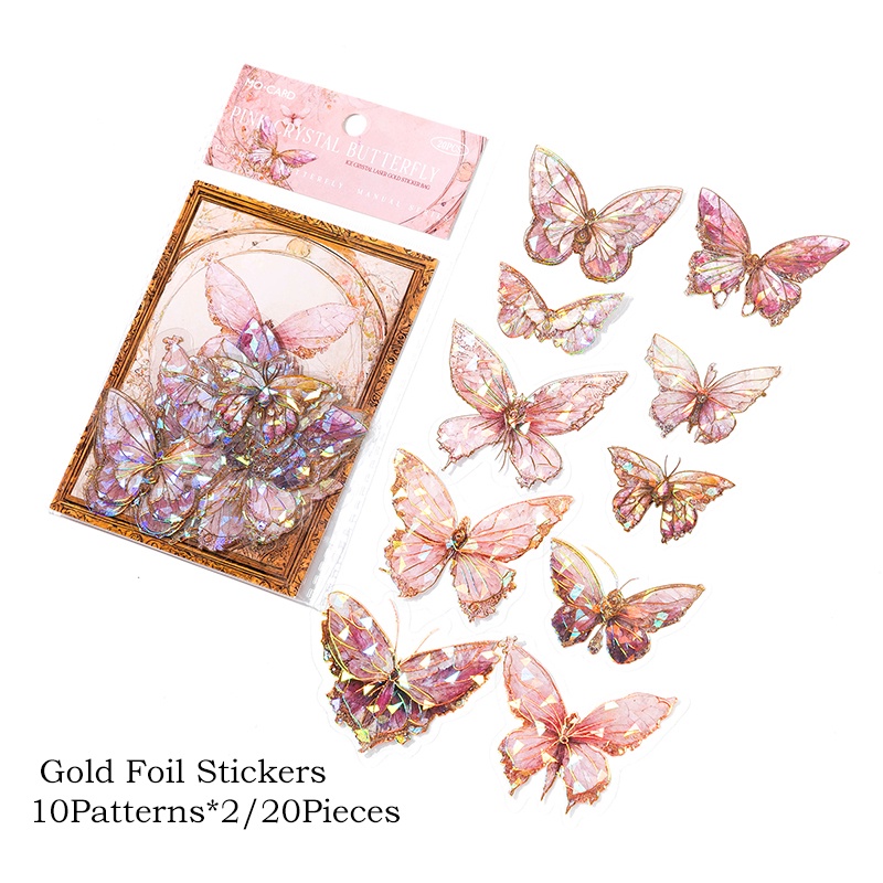 Journamm 20pcs/pack PET Estética Adesivos Borboleta Laser Gold DIY Colagem De Fotos Álbum À Prova D'água Decorativos