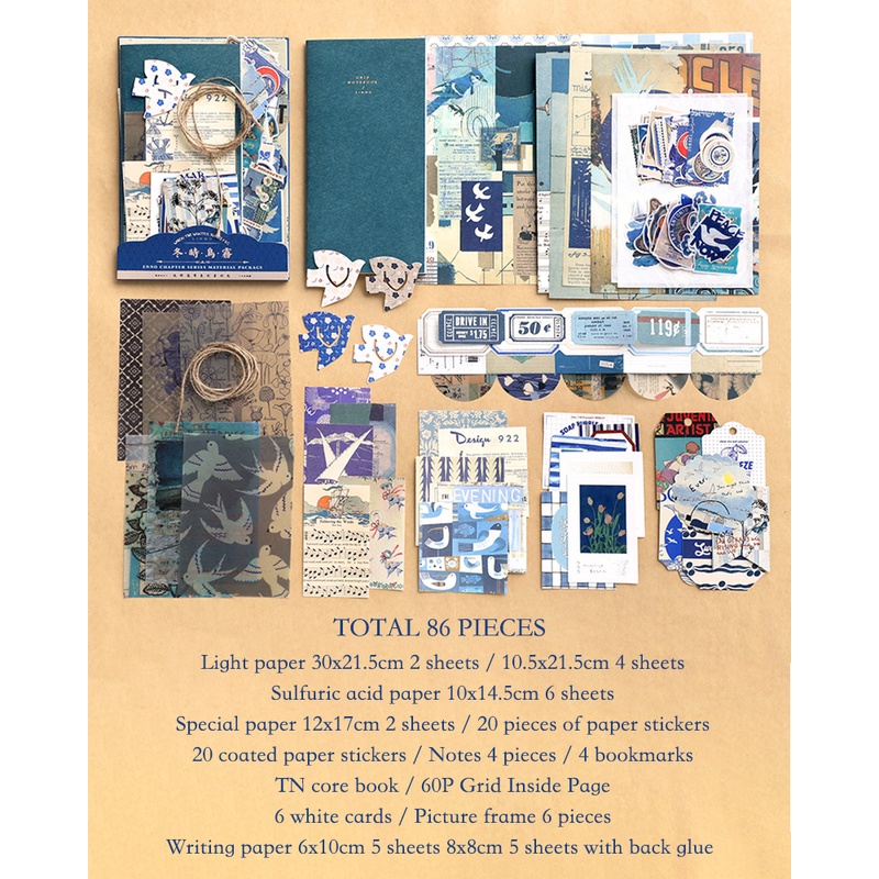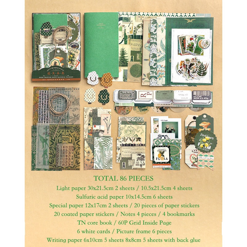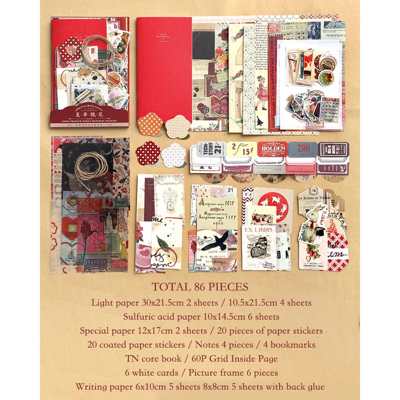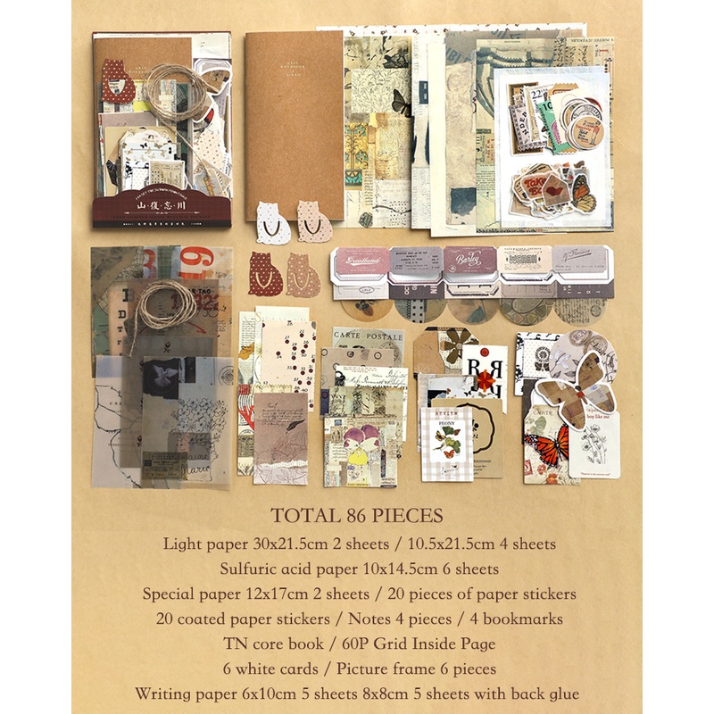 Journamm 86pcs/Embalagem DIY Scrapbooking Pack Colagem Junk Diário Decoração Adesivos Materiais Papel Combo Kit Estética Papelaria