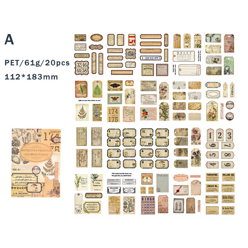Journamm 20 Autocolantes PCS Vintage Livros PET Materiais Material