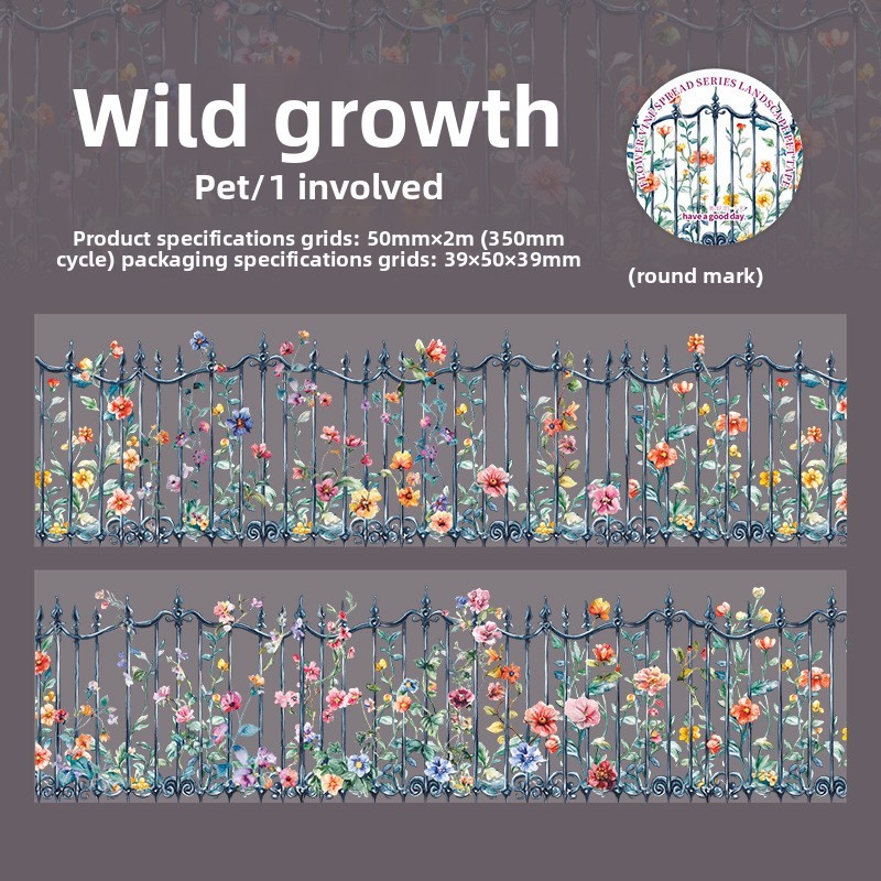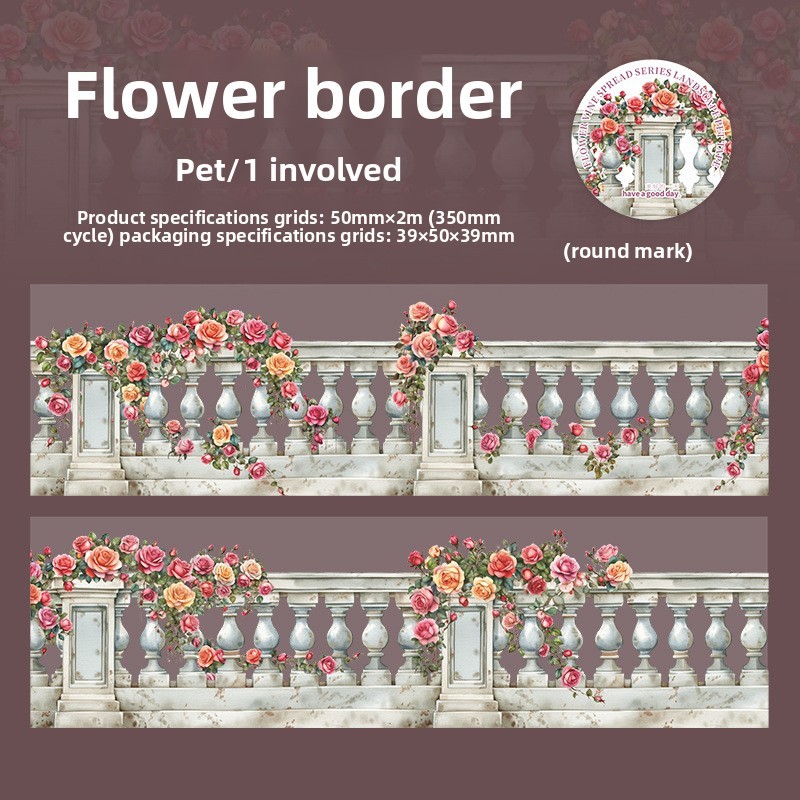 Journamm 50mm * 2m Fitas De Cerca Floral Adesivo Decoração Lixo Diário DIY Scrapbooking Material Escolar Colagem Papelar