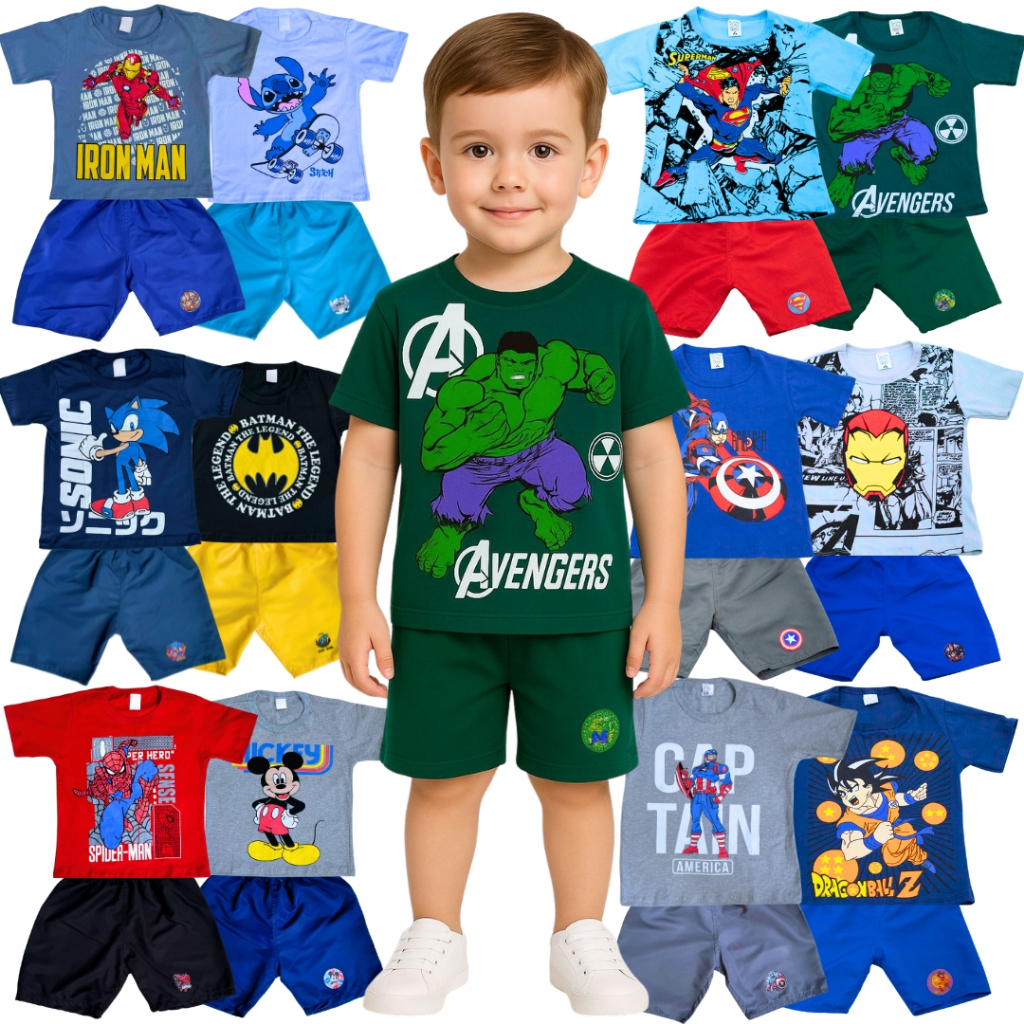 Kit Sortido 10 Conjuntos Infantil - 20 Peças De Roupas Menino 10 Camisetas + 10 Bermudas