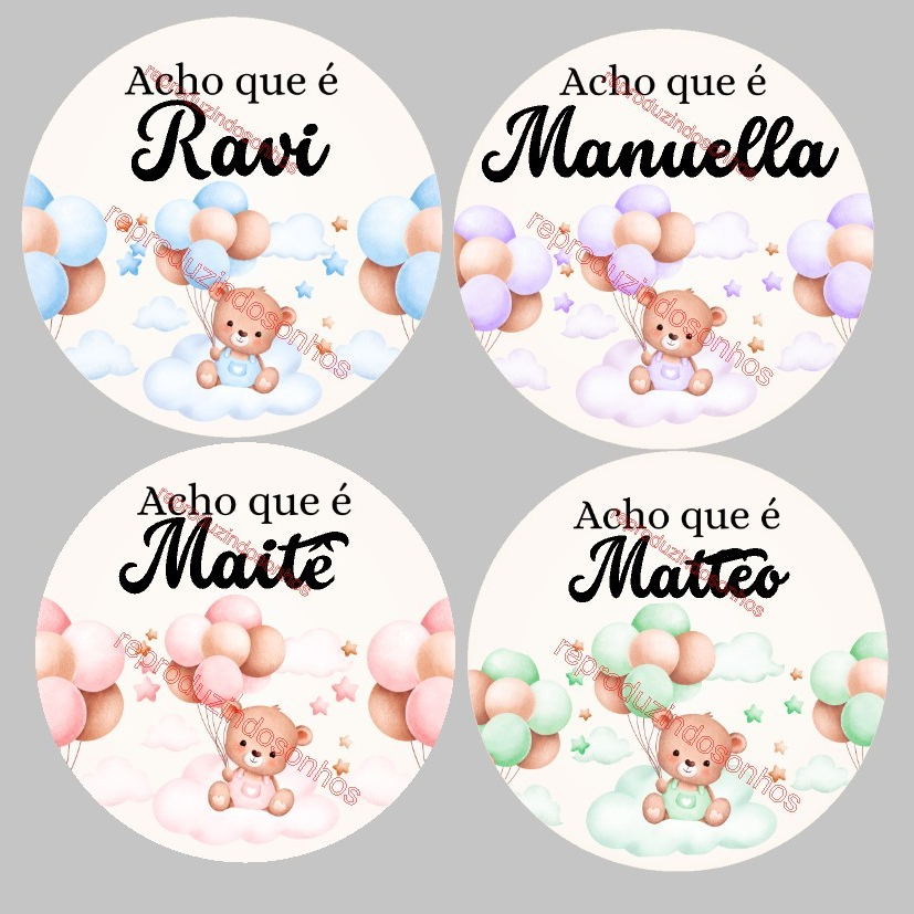 ADESIVOS DE CHÁ REVELAÇÃO PERSONALIZADO COM NOME - Escolha as cores - Lembrancinhas de Chá de Bebê