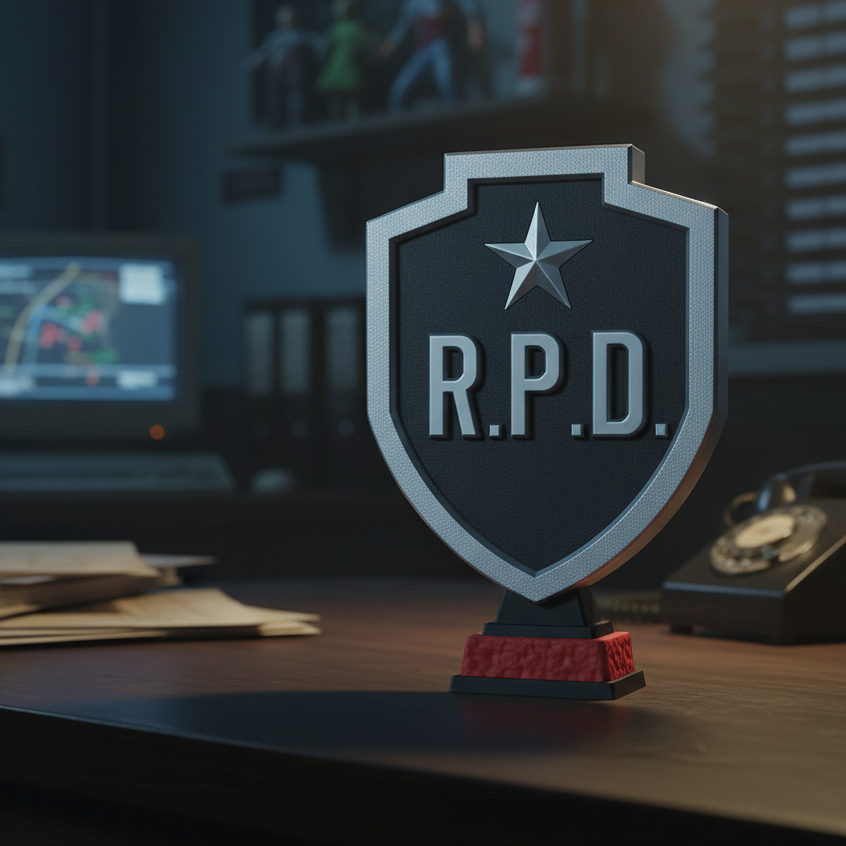 Placa RPD Com Base - Decoração Resident Evil - Emblema Geek