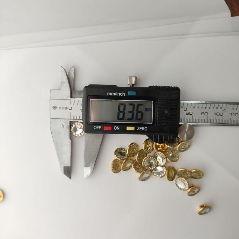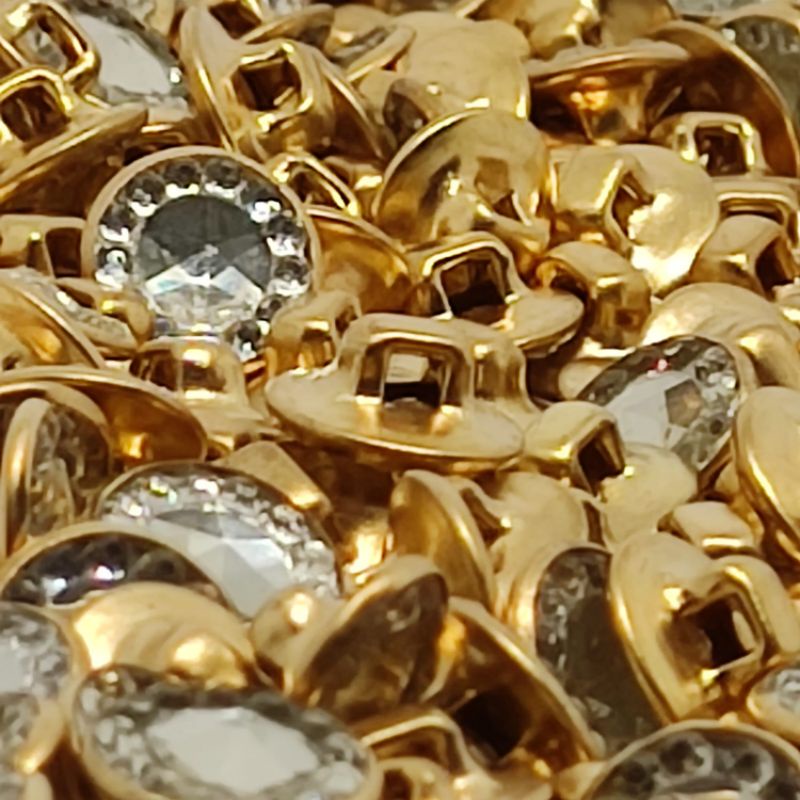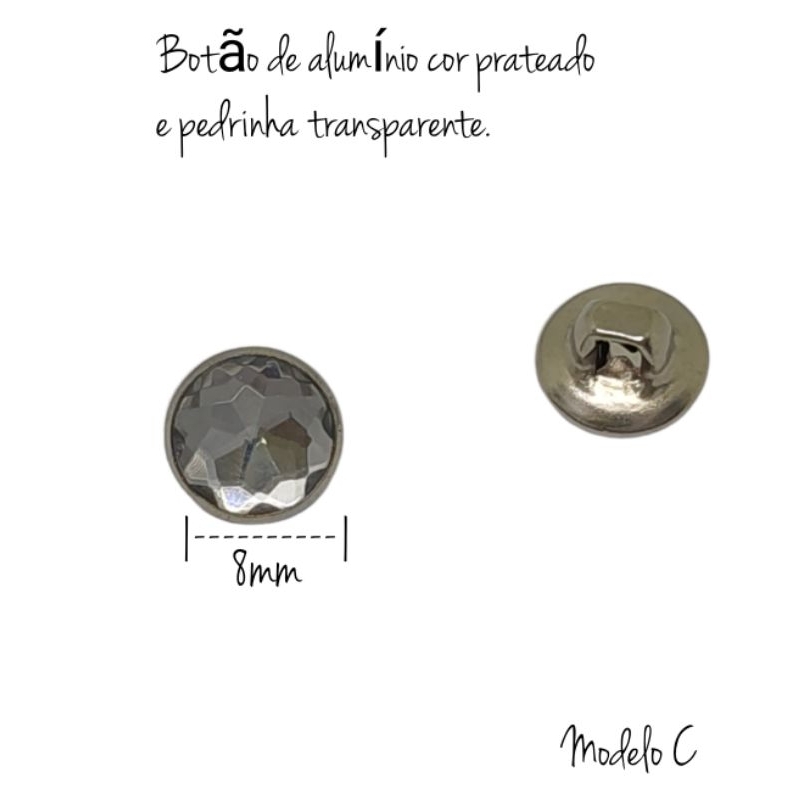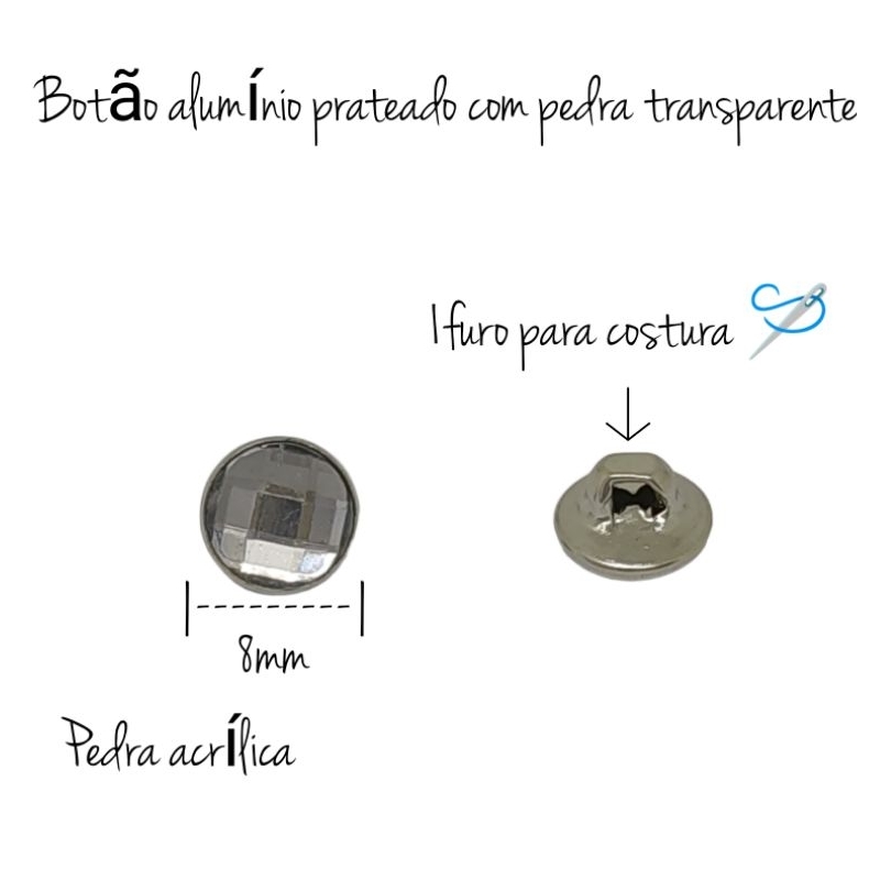 20 unidades de botão de alumínio com pedrinha de acrílico cód 243 cx 33