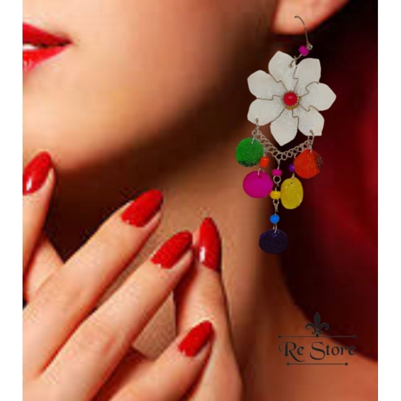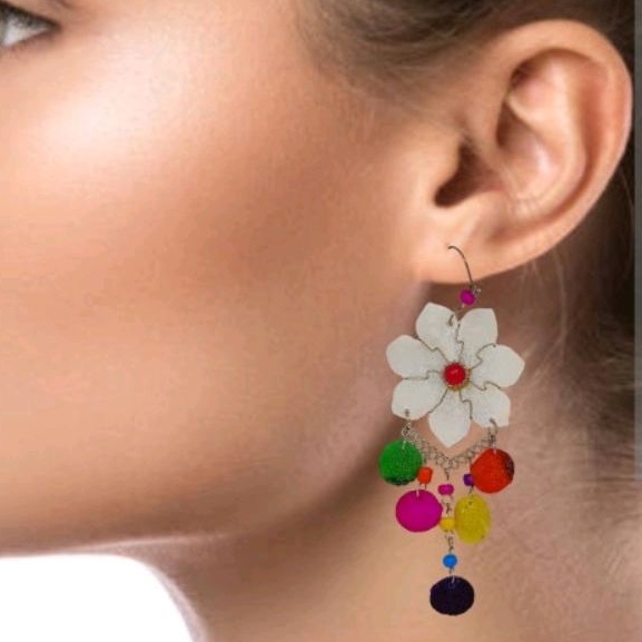 Maxi Brinco flor Hippie Alpaca Escama De Peixe Cód Nt 113