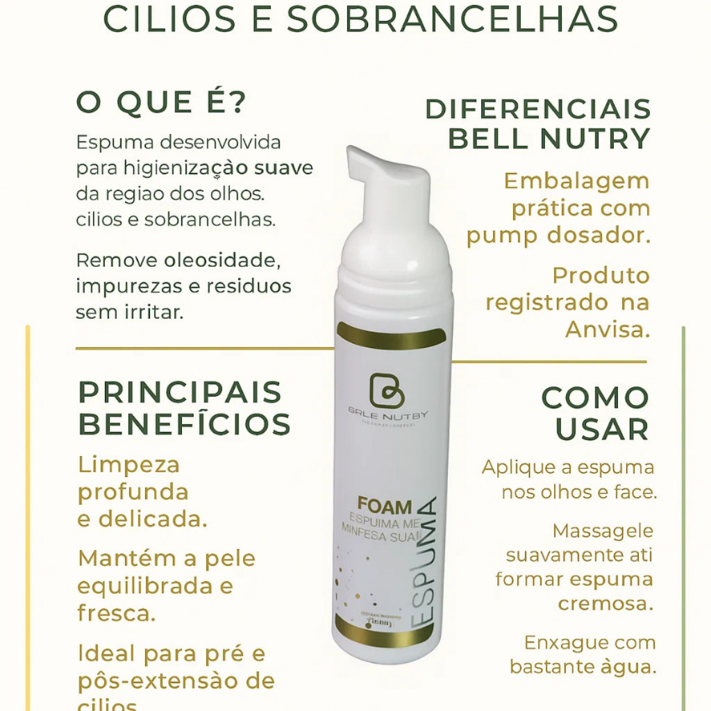 Espuma De Limpeza Suave Cílios E Sobrancelha Bell Nutry Com Anvisa