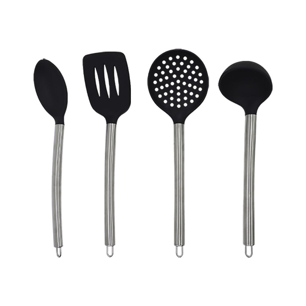 Kit Com 4 Peças Preto Utensílios Para Cozinha Silicone