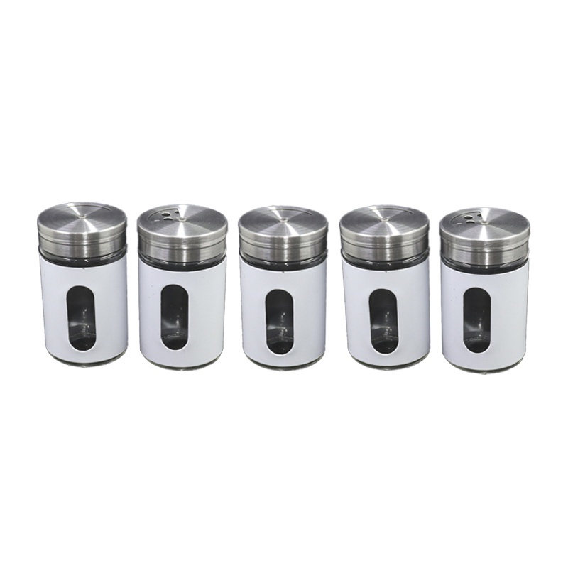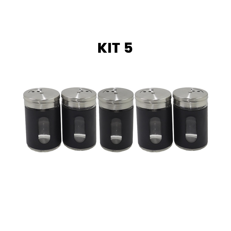 Kit 5 Saleiro Pimenteiro Porta Condimentos Inox Visor Em Vidro