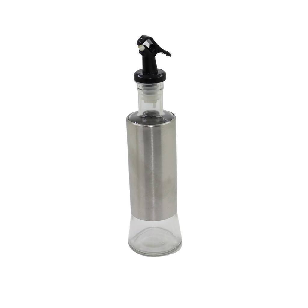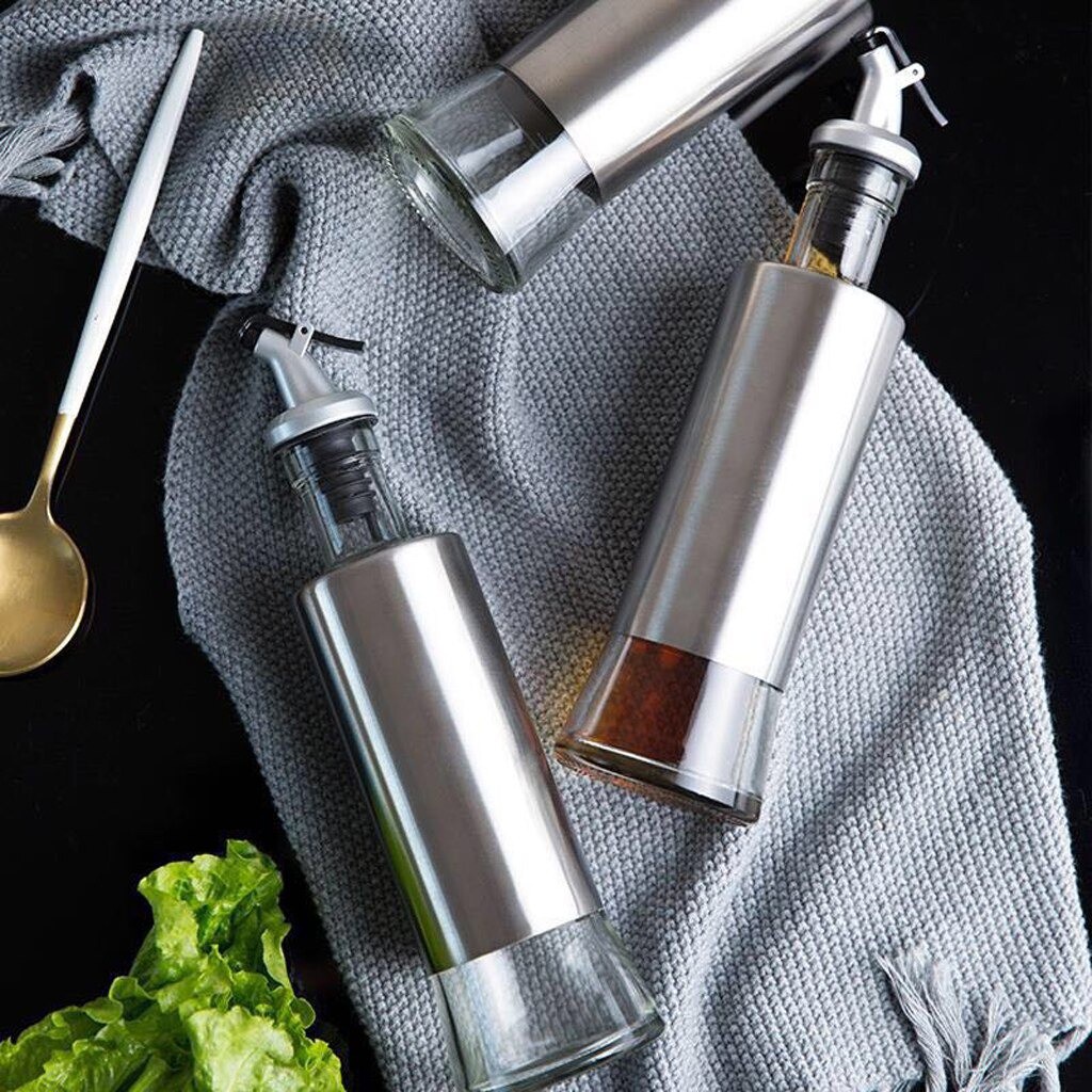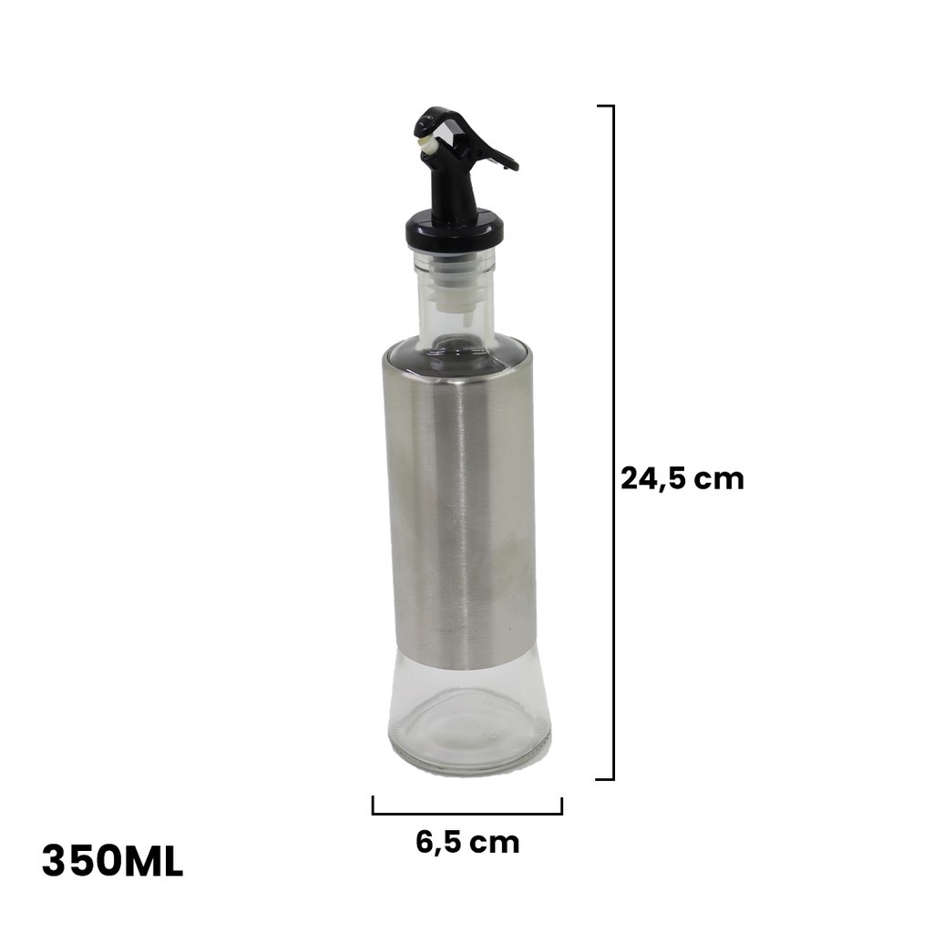 KIT 2 Galheteiros Em Inox e Vidro 300ml Porta Azeite Vinagre Óleo Com Dosador