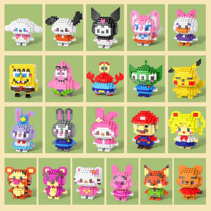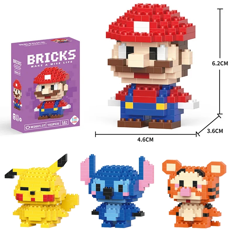 Mini Blocos de Montar Coleção Personagens: Mario, Pokémon e Stitch - Brinquedo de Construção