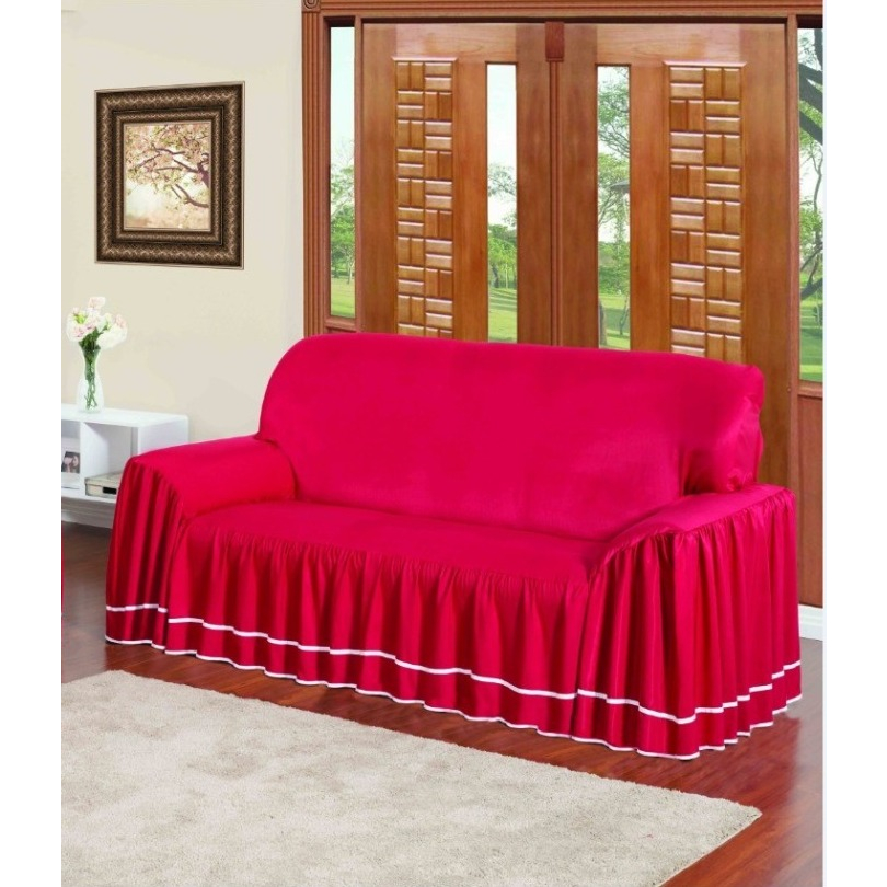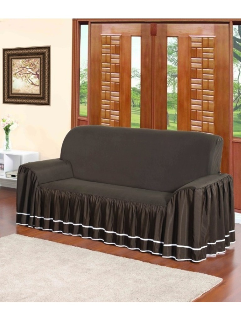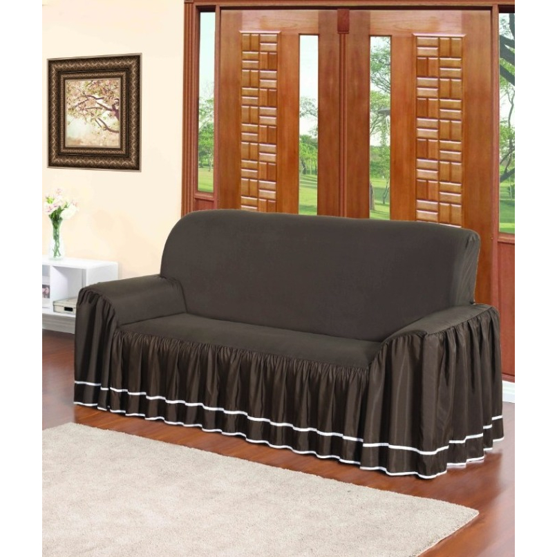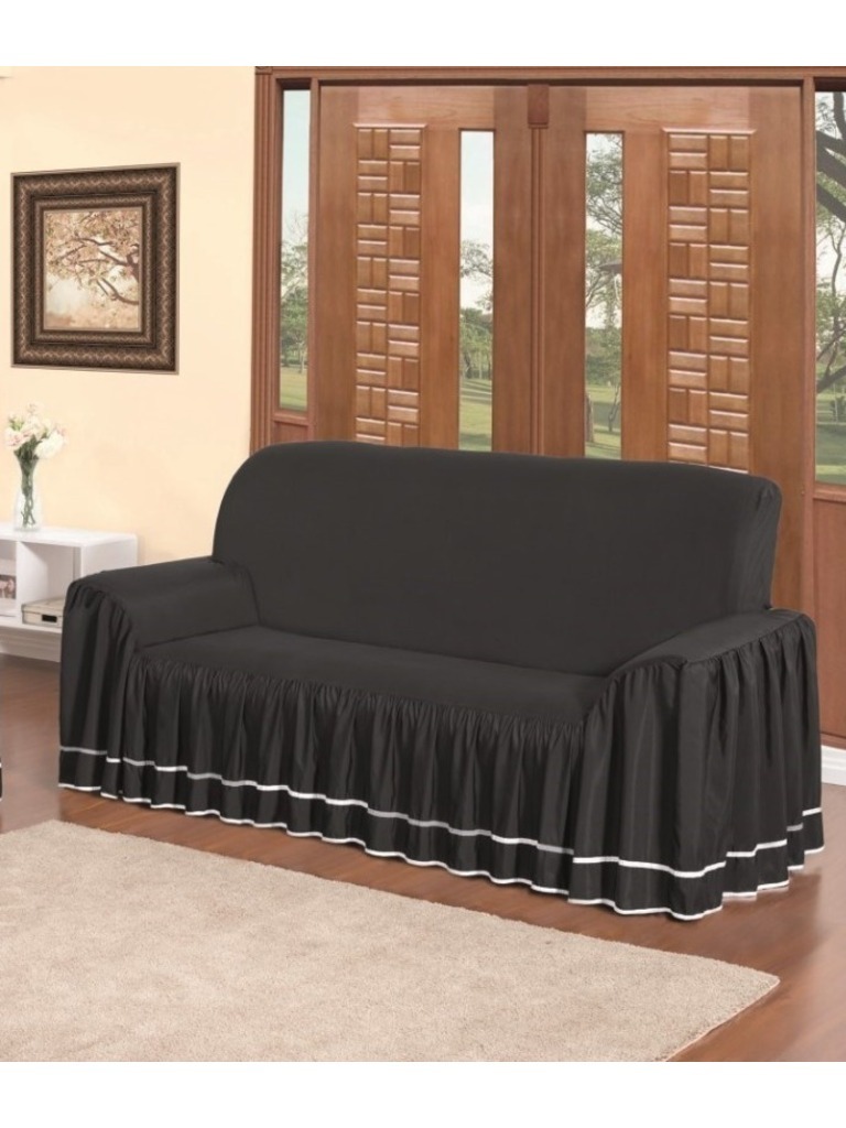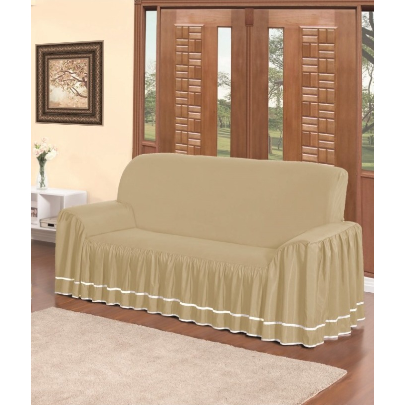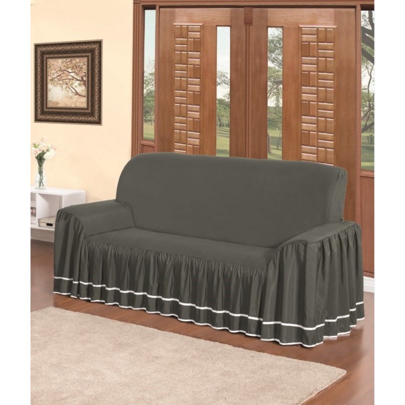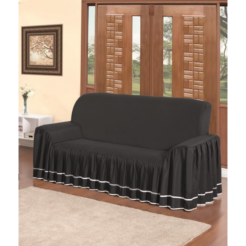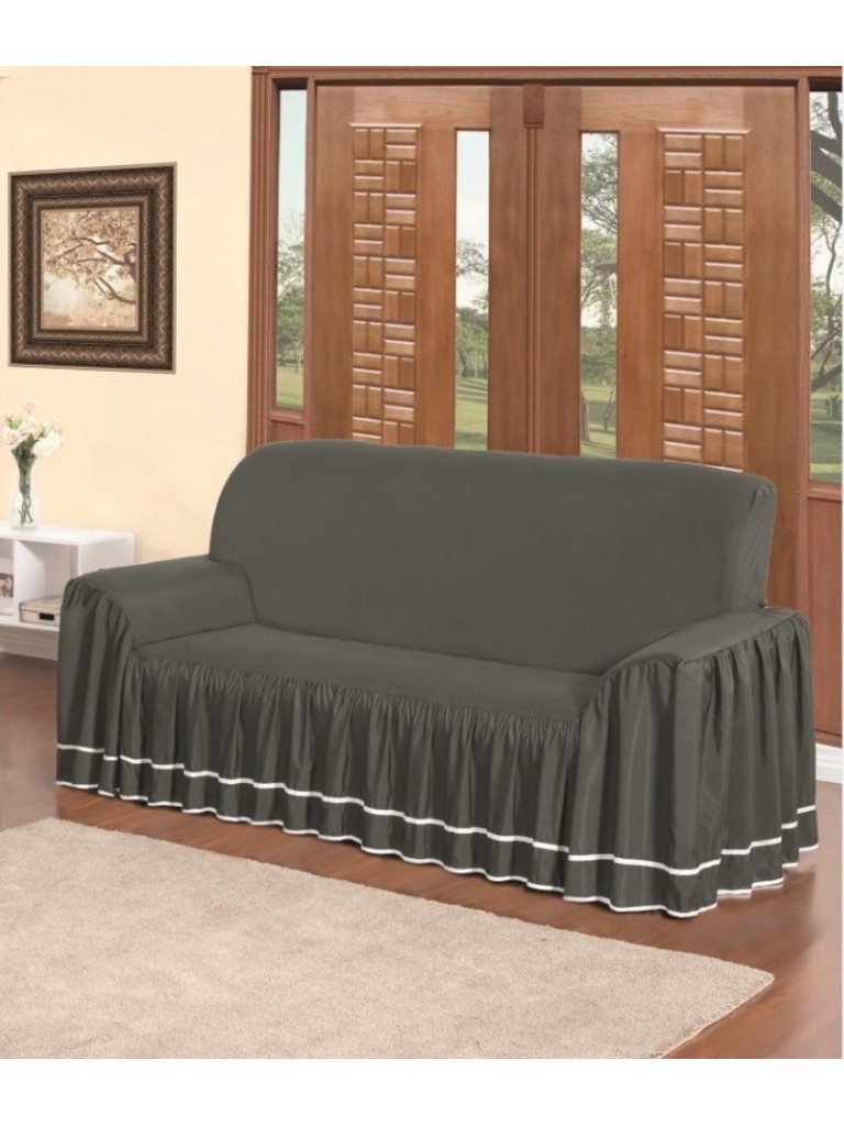 Capa de Sofá Dalia 3 lugares Protetor Tecido Microfibra Peletizado Com Babado