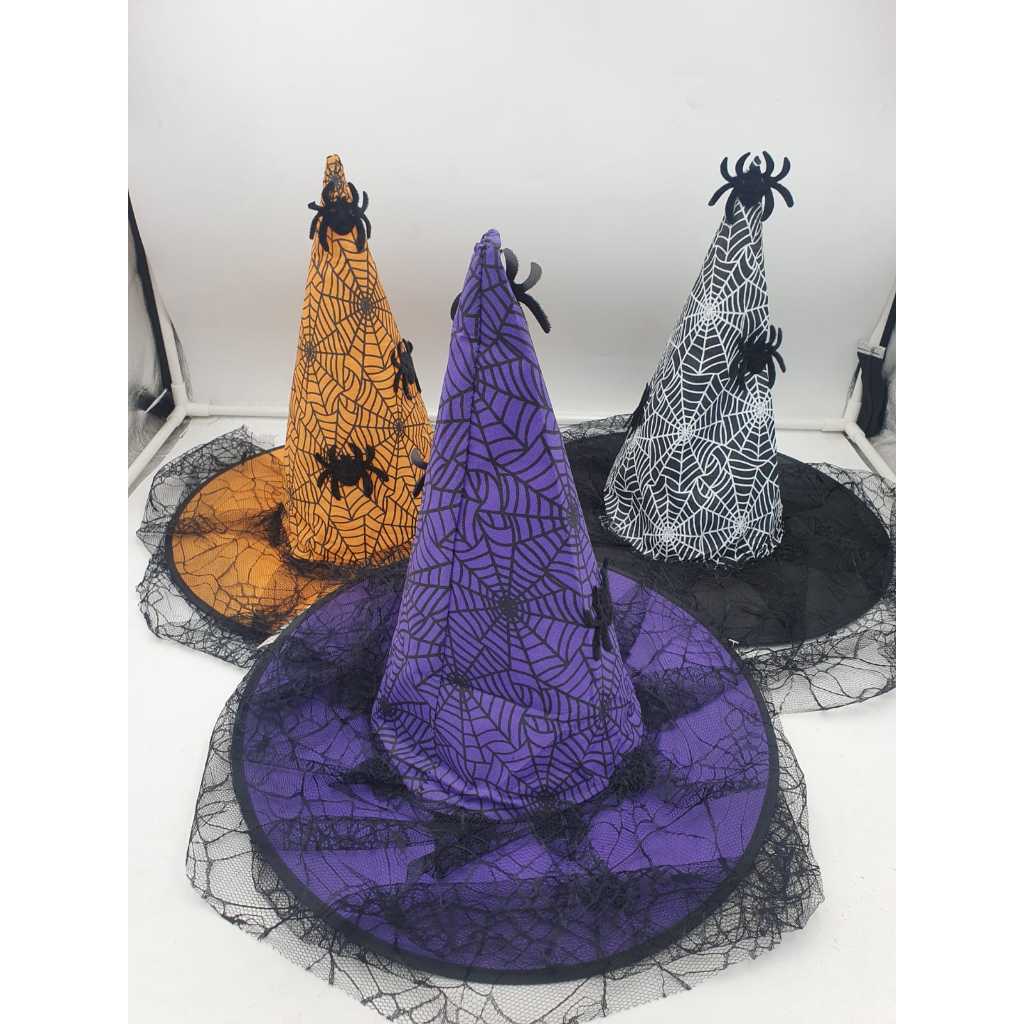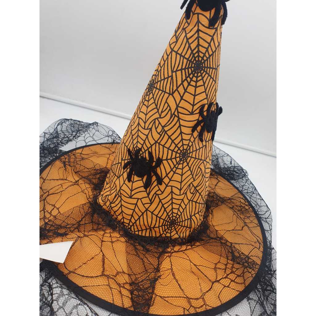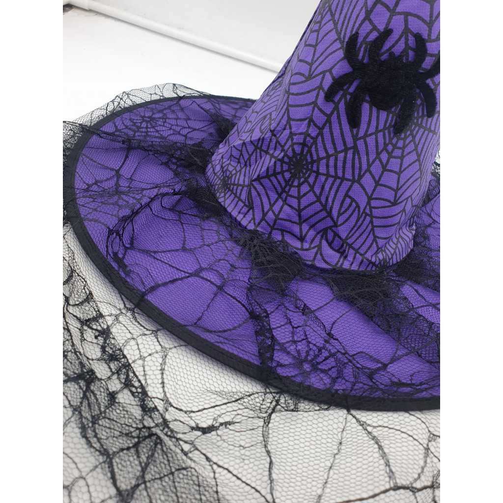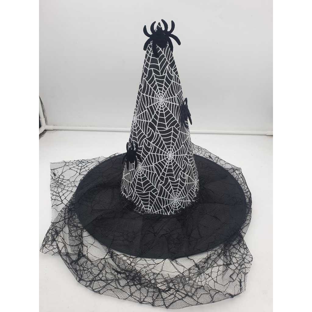 Chapéu de bruxa com aranha e teia - Fantasia Cosplay