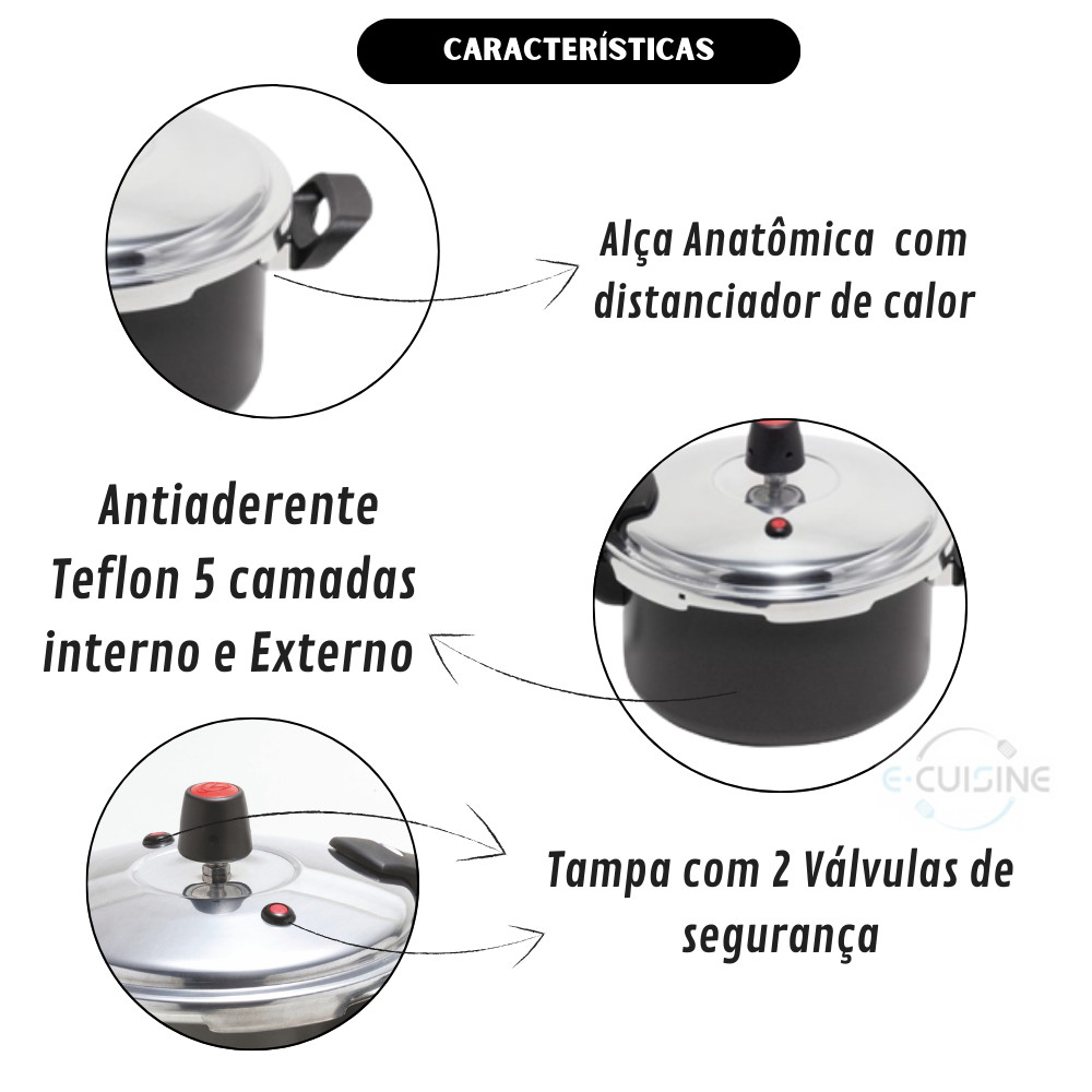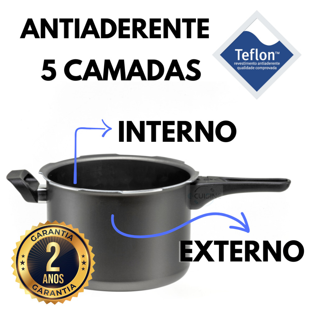 Kit Jogo de Panelas de Pressão 3L e 4,5L Teflon com fechamento externo e tampa de vidro temperado