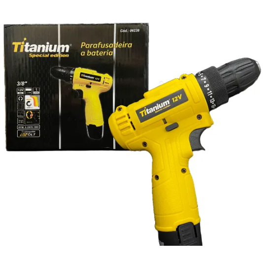 Parafusadeira A Bateria Furadeira 12v Bivolt Amarela Com Carregador e Bateria Titanium