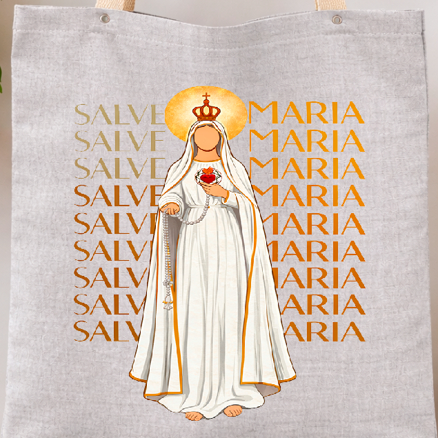 Bolsa Ecobag Material Linho Sataurno Lançamento Estampa Ave Maria Sacola Estilosa
