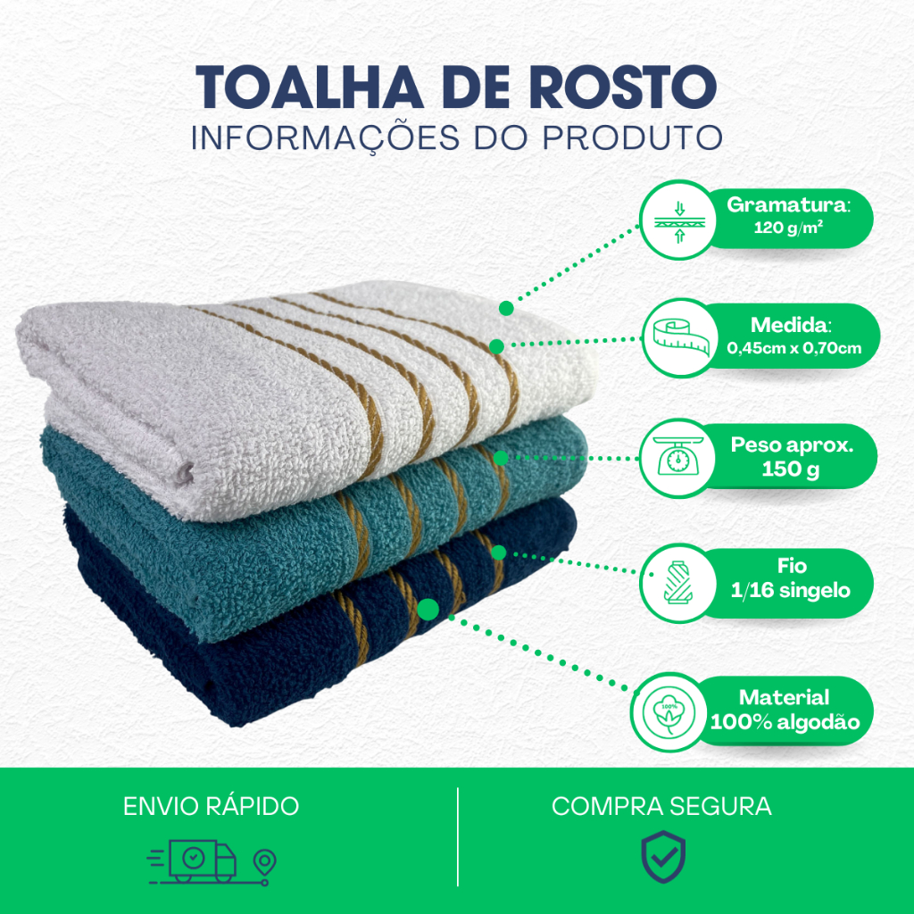 Kit 06 Toalhas de Algodão Felpuda Alta Absorção Toalha de Rosto Premium