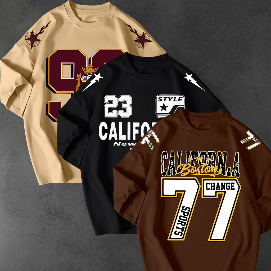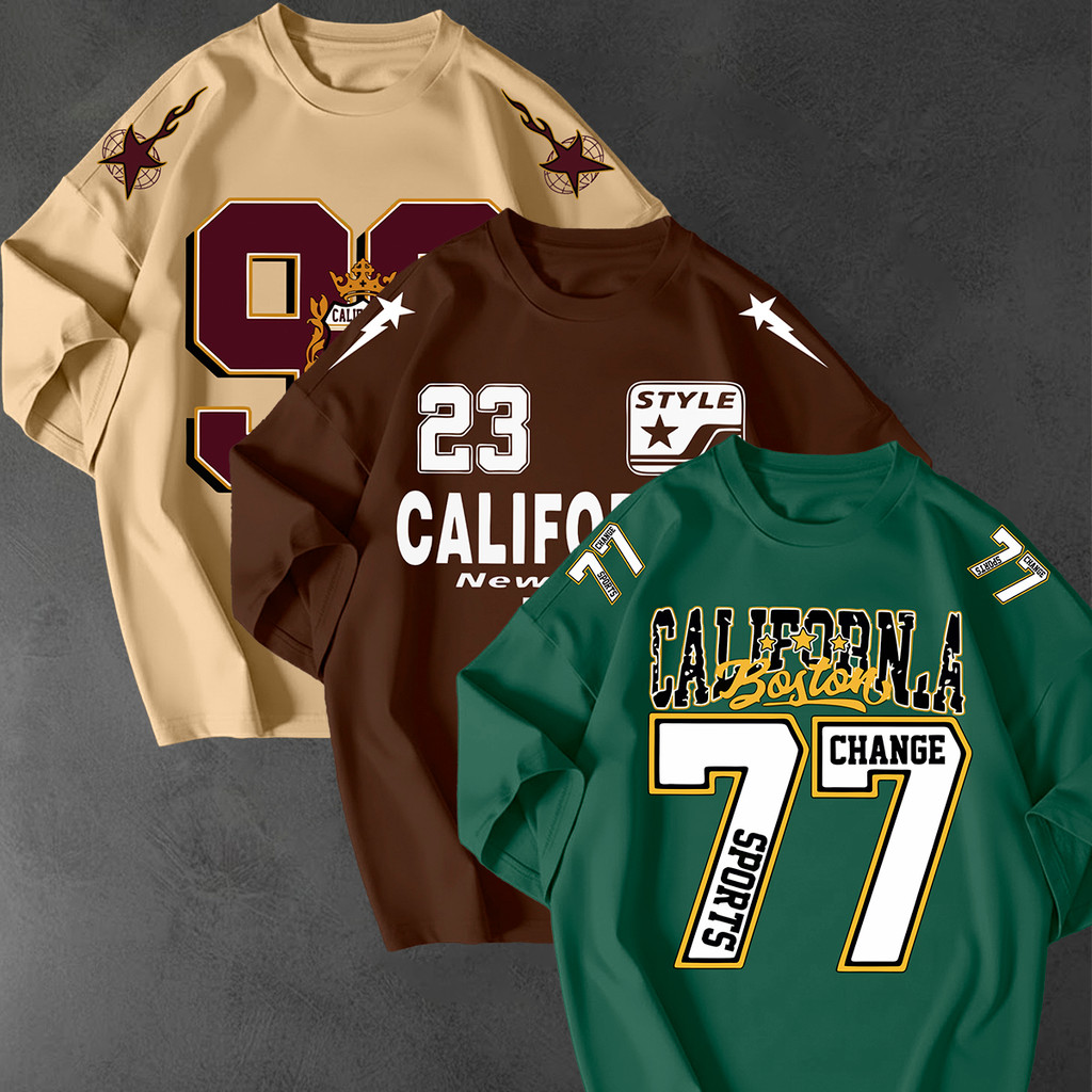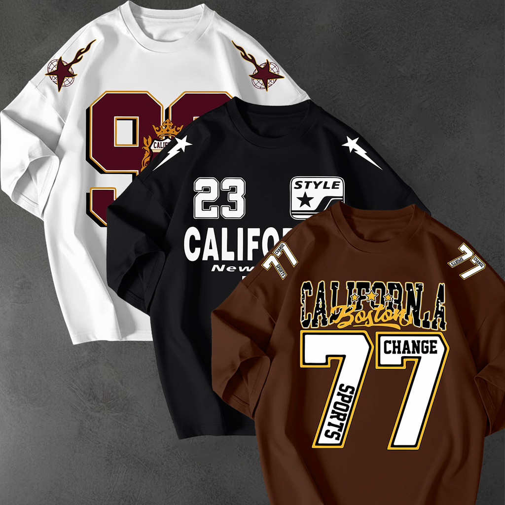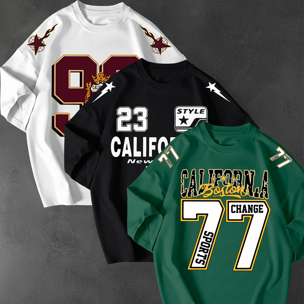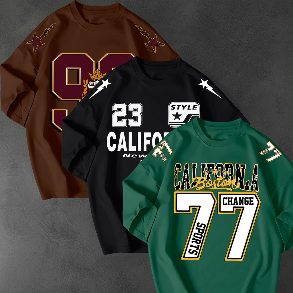 Kit 3 Camisetao Oversized Streetwear Estampa California 77 Unissex 100 Algodao Fio 30.1 Casual Top