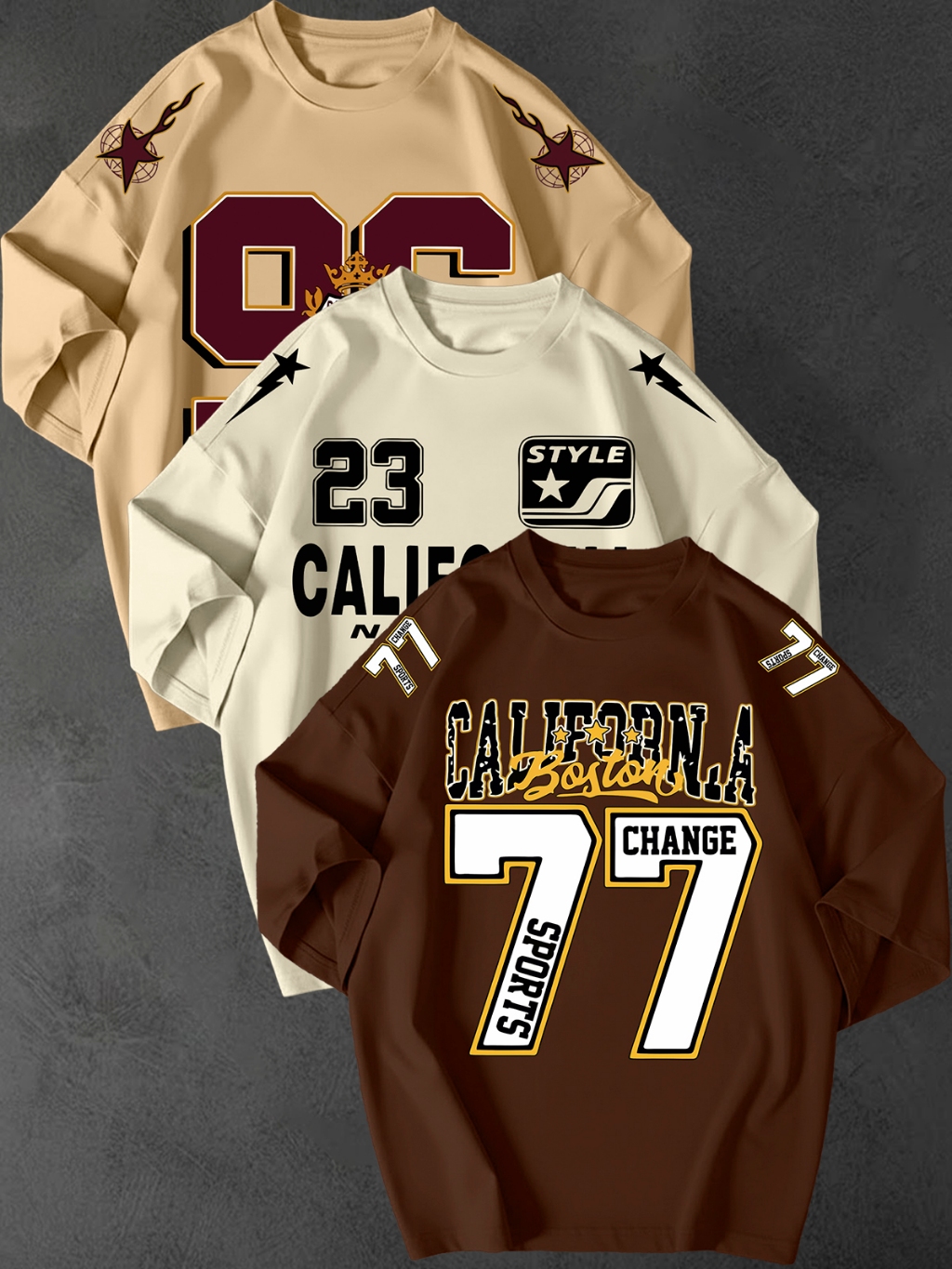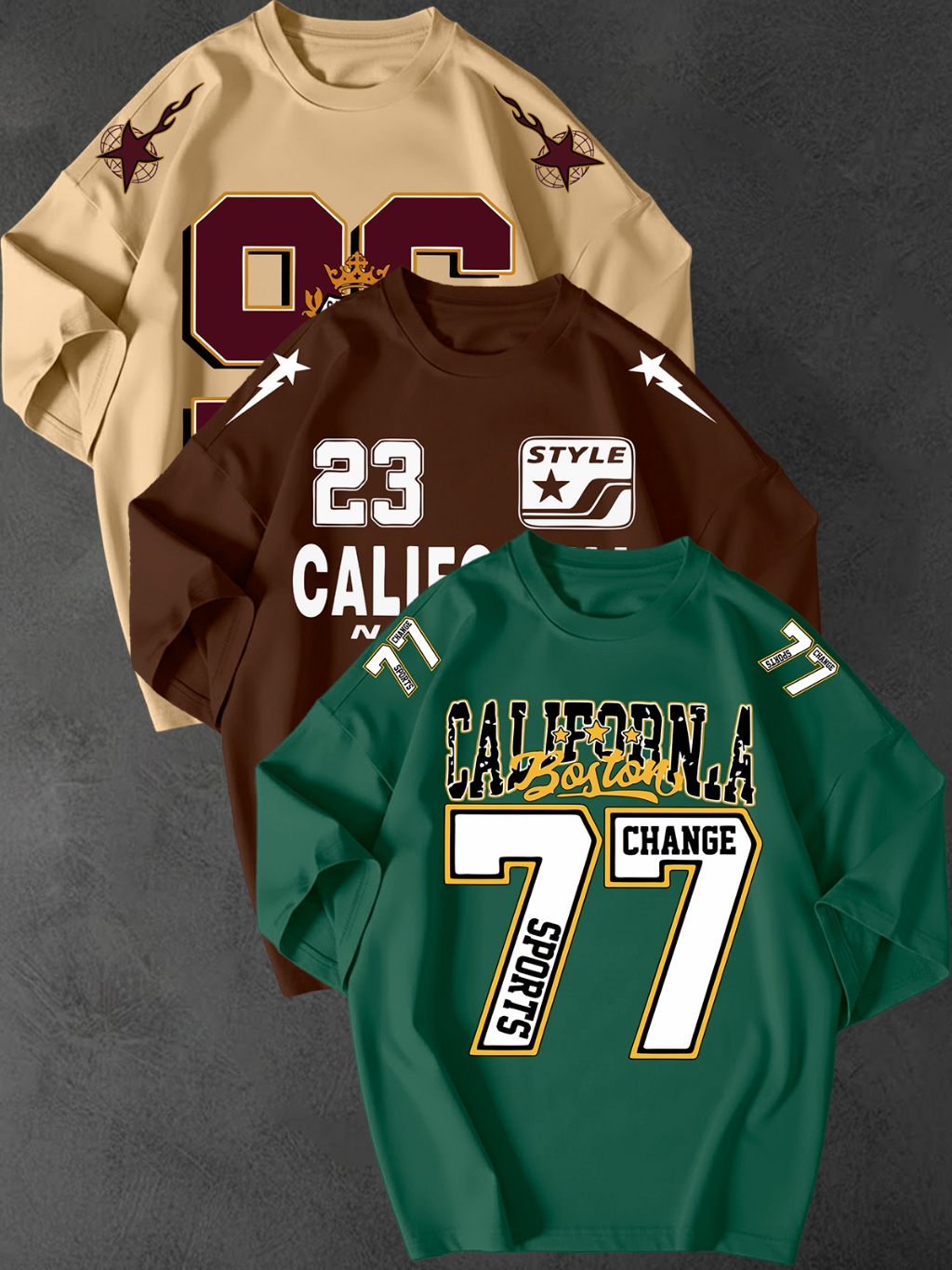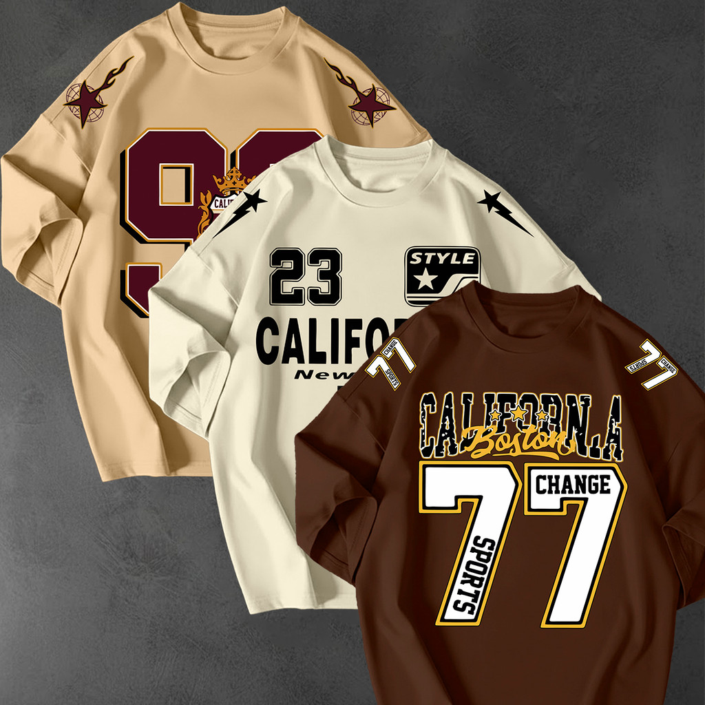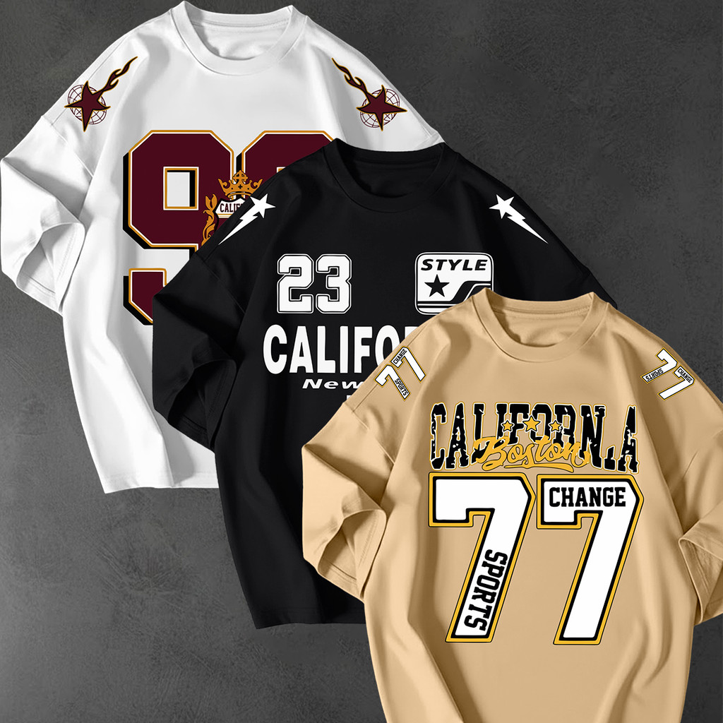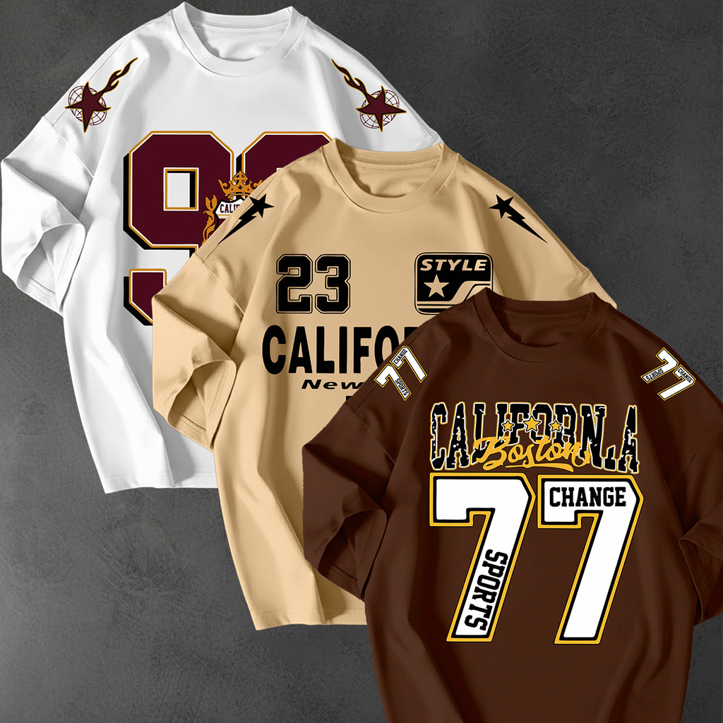Kit 3 Camisetao Oversized Streetwear Estampa California 77 Unissex 100 Algodao Fio 30.1 Casual Top