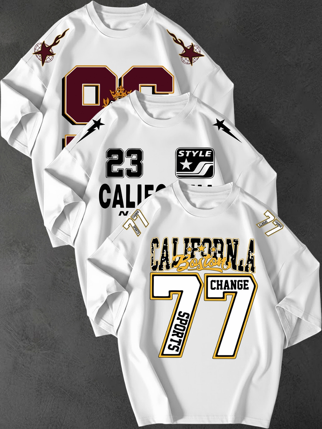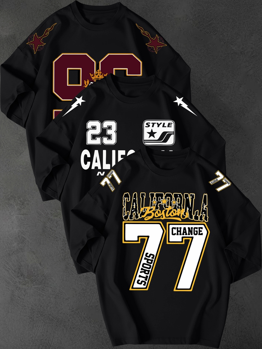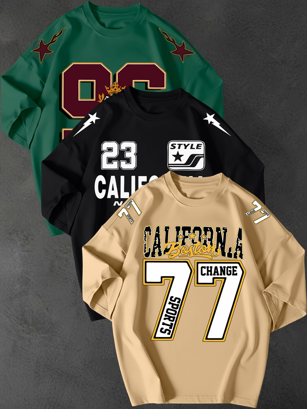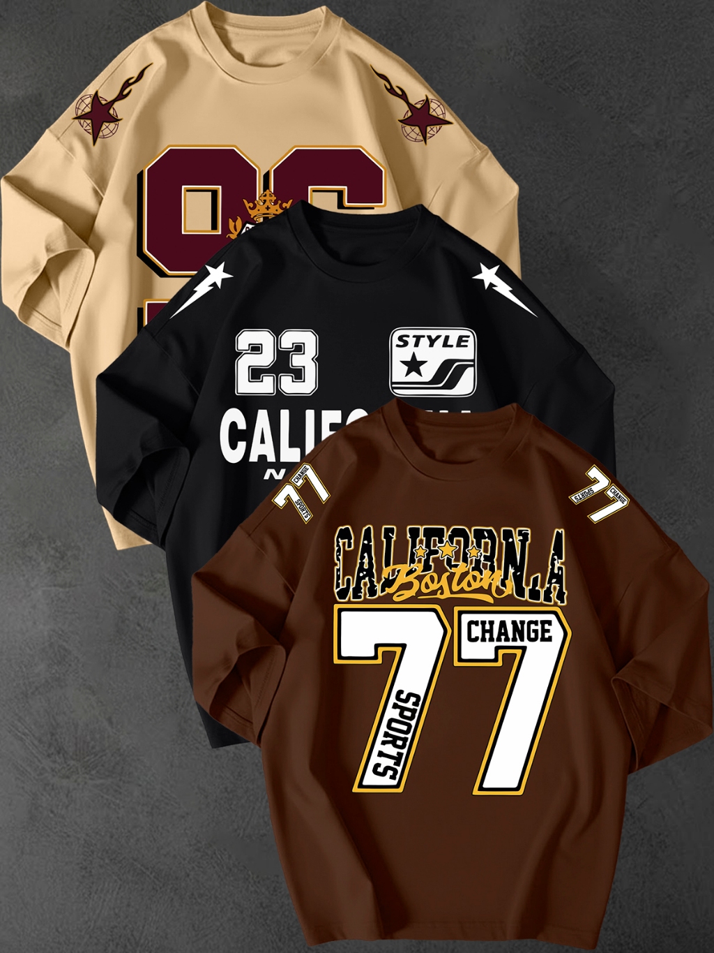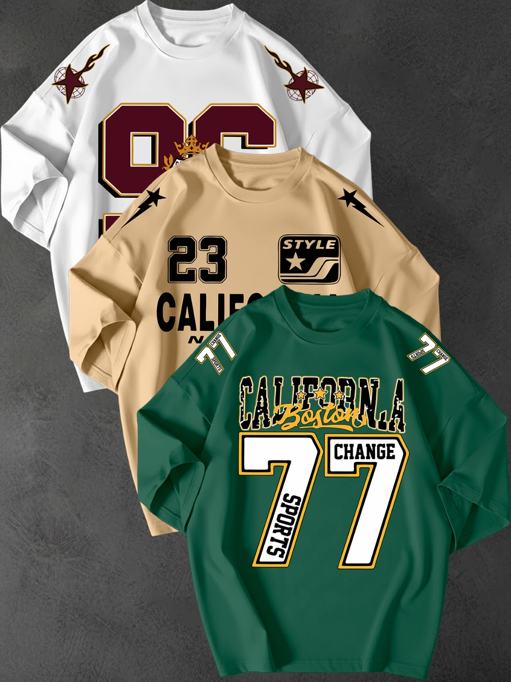 Kit 3 Camisetao Oversized Streetwear Estampa California 77 Unissex 100 Algodao Fio 30.1 Casual Top