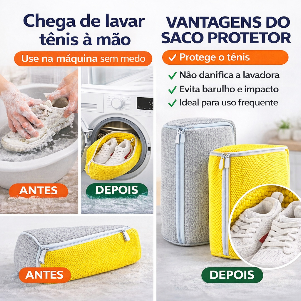 Saco Protetor para Lavar Tênis na Máquina – Não Deforma, Evita Barulho e Protege a Lavadora