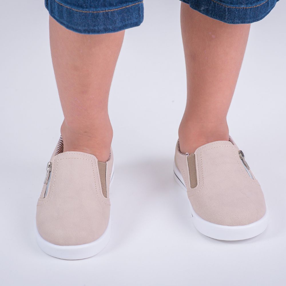 Sapatênis Infantil Masculino Bege com Zíper Slip On Iate Confortável Casual Escolar 22337 Pequito