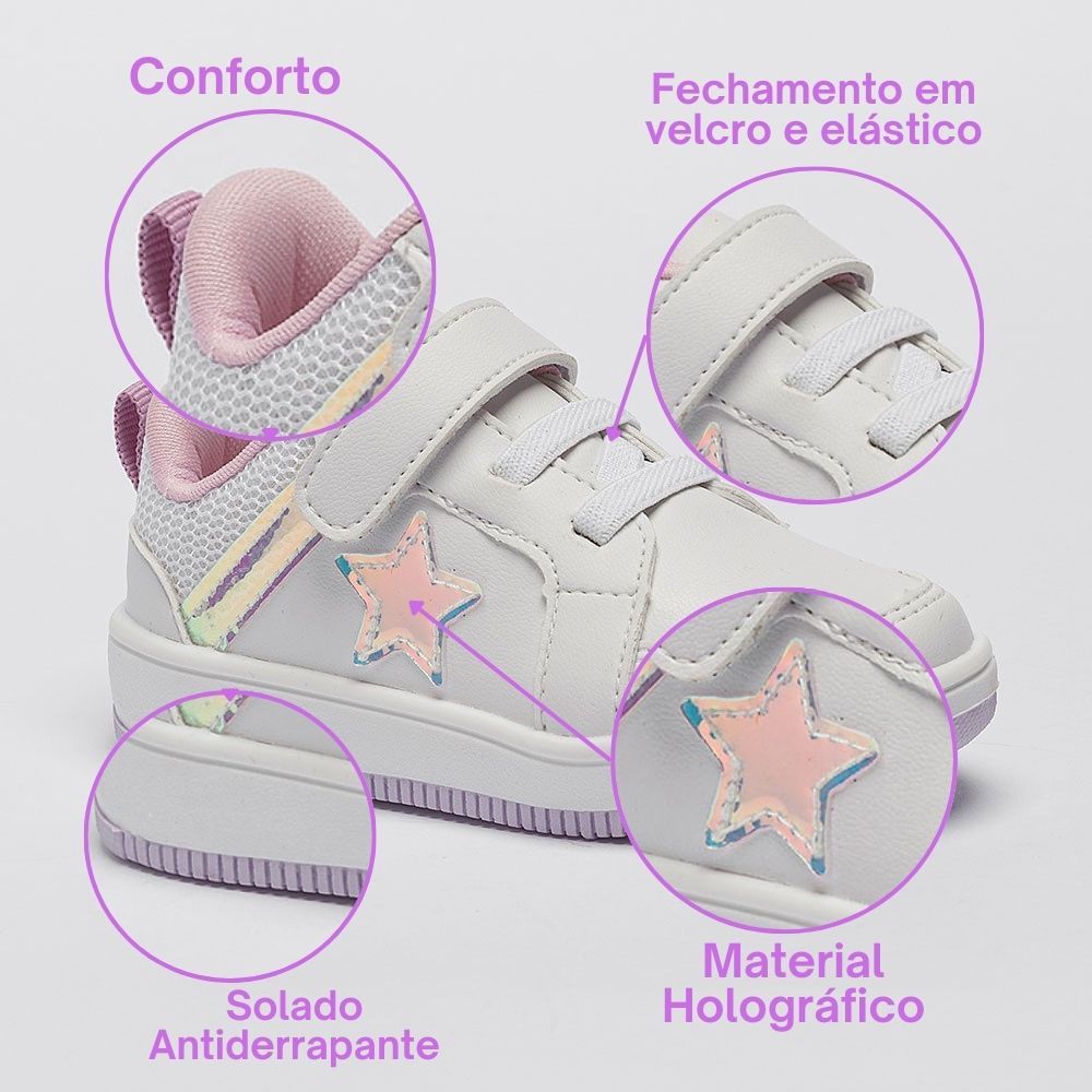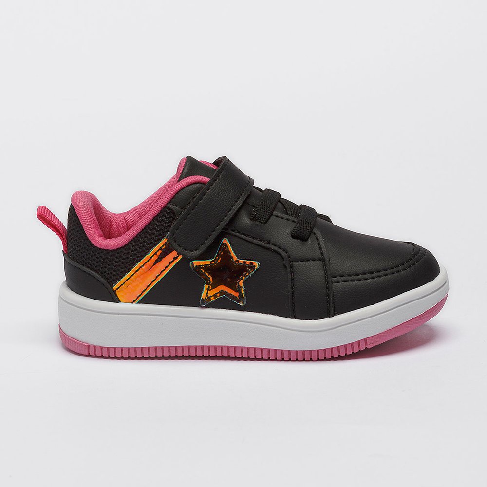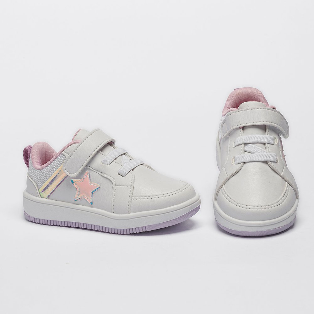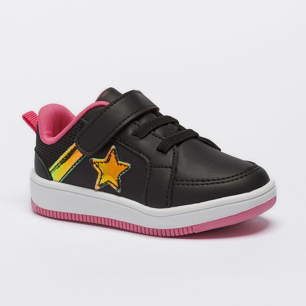 Tênis Infantil Menina Casual Calce Fácil Feminino Estrela Brilho Sola Bicolor Confortável Pequito