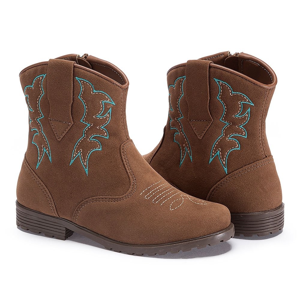 Bota Infantil Texana Country Feminina Marrom Bordada Pequito
