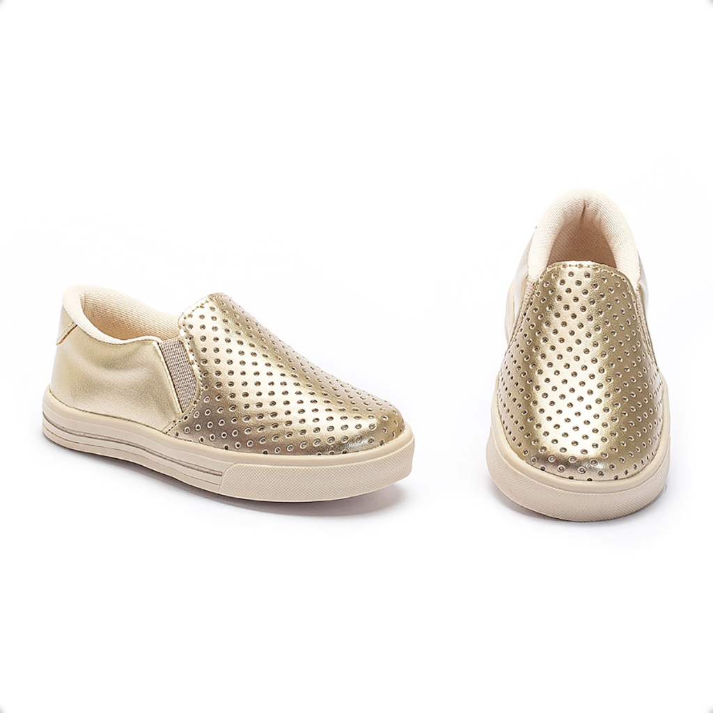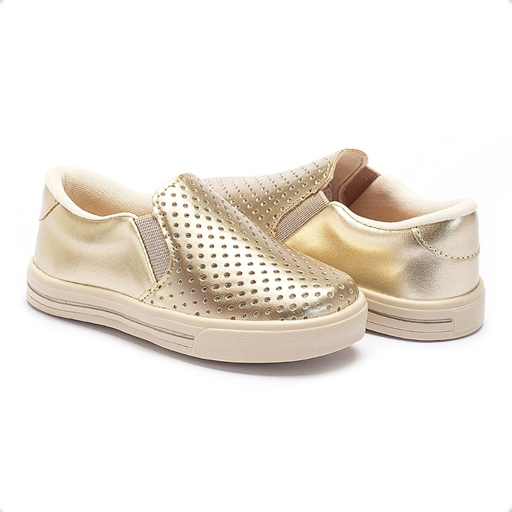 Tênis Feminino Infantil Slip On Metalizado Dourado 22440 Pequito