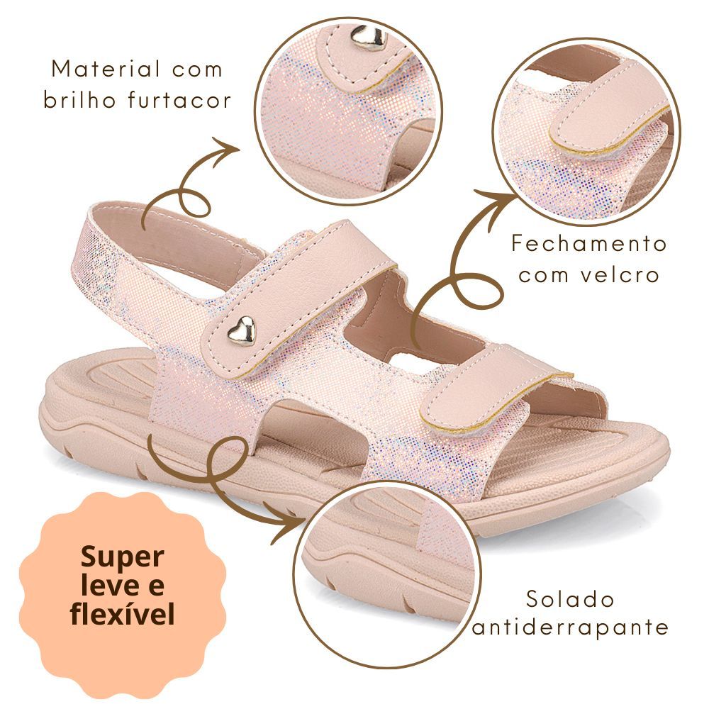 Sandália Infantil Feminina Papete Rosa Glitter