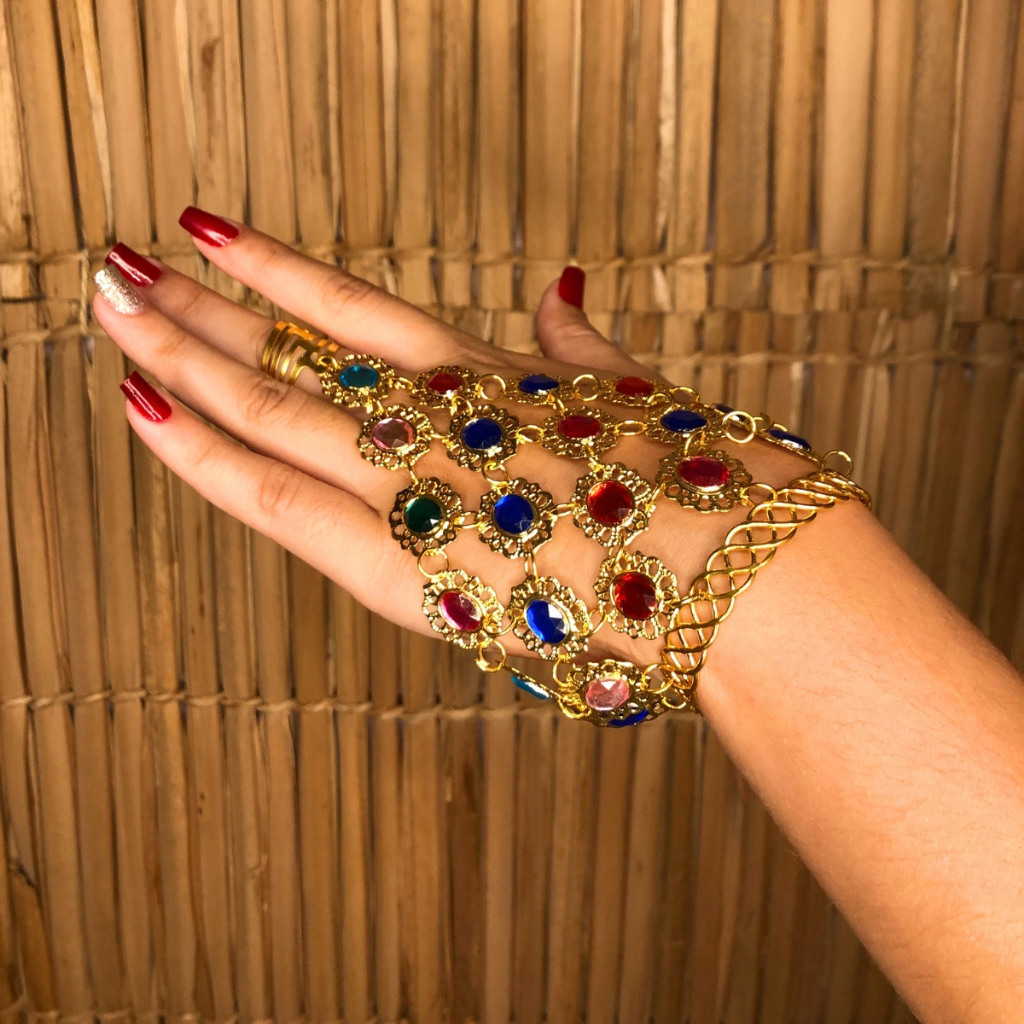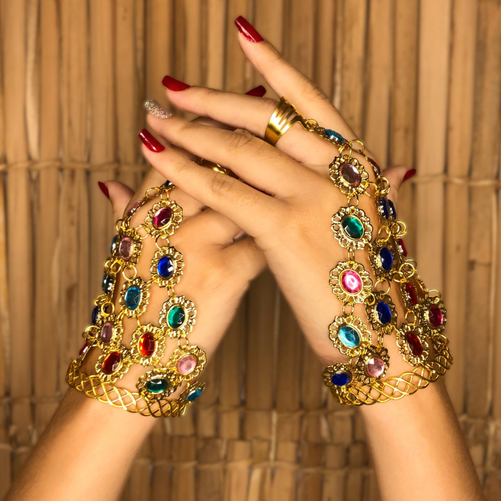 Par De Pulseiras Dourada Com Pedras Coloridas Dança Do Ventre/cigana/indiana