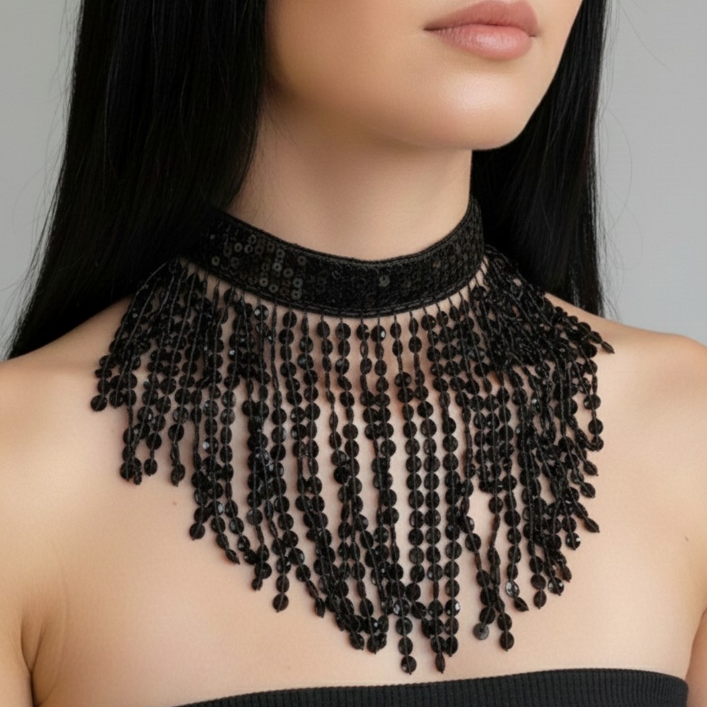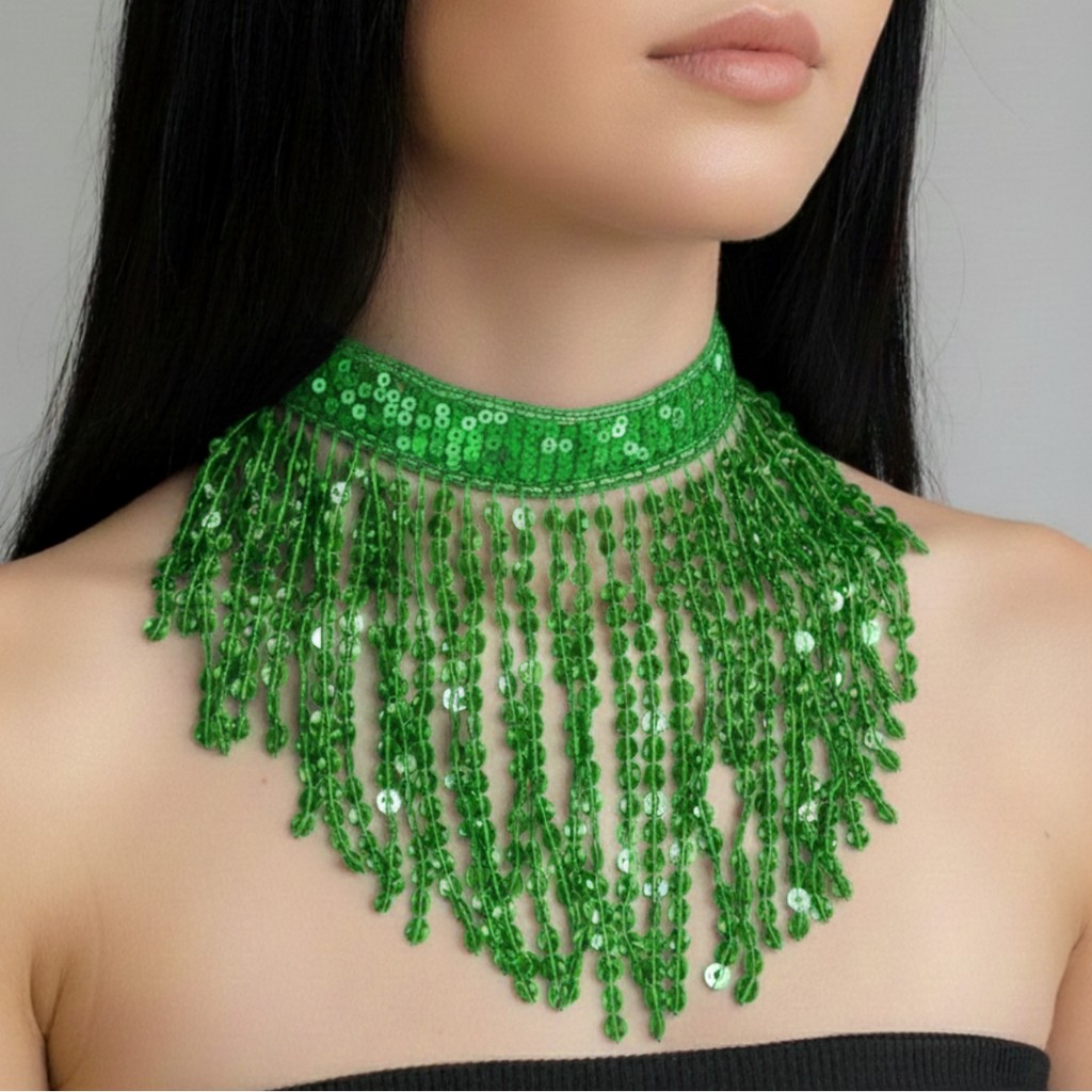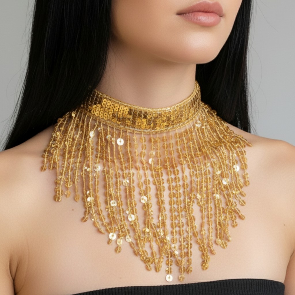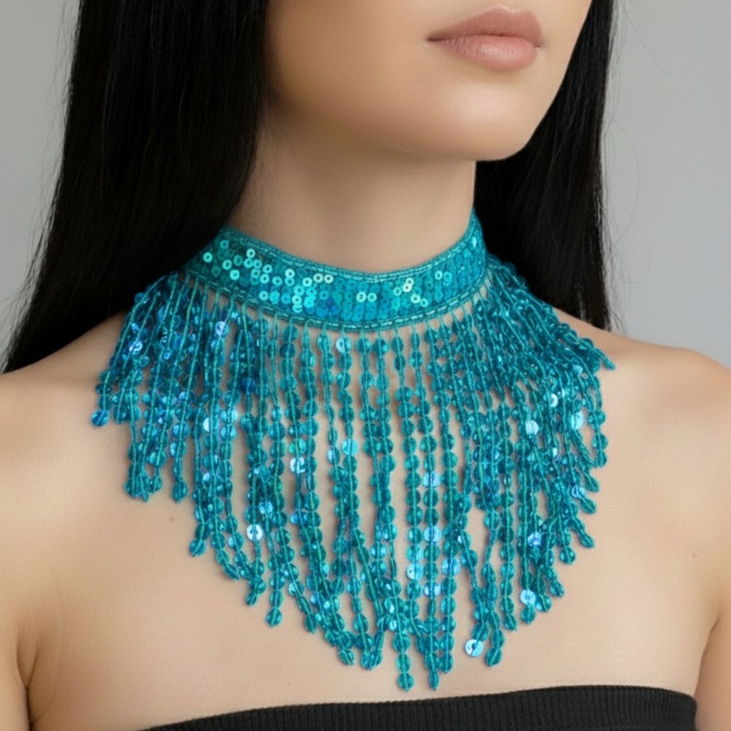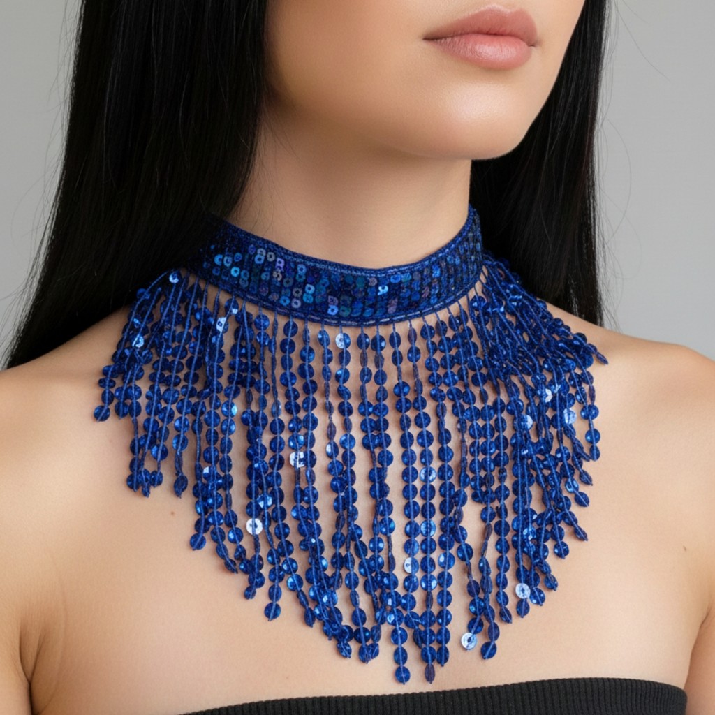 Colar Gargantilha Franja Paetê Dança/ Carnaval - AB85