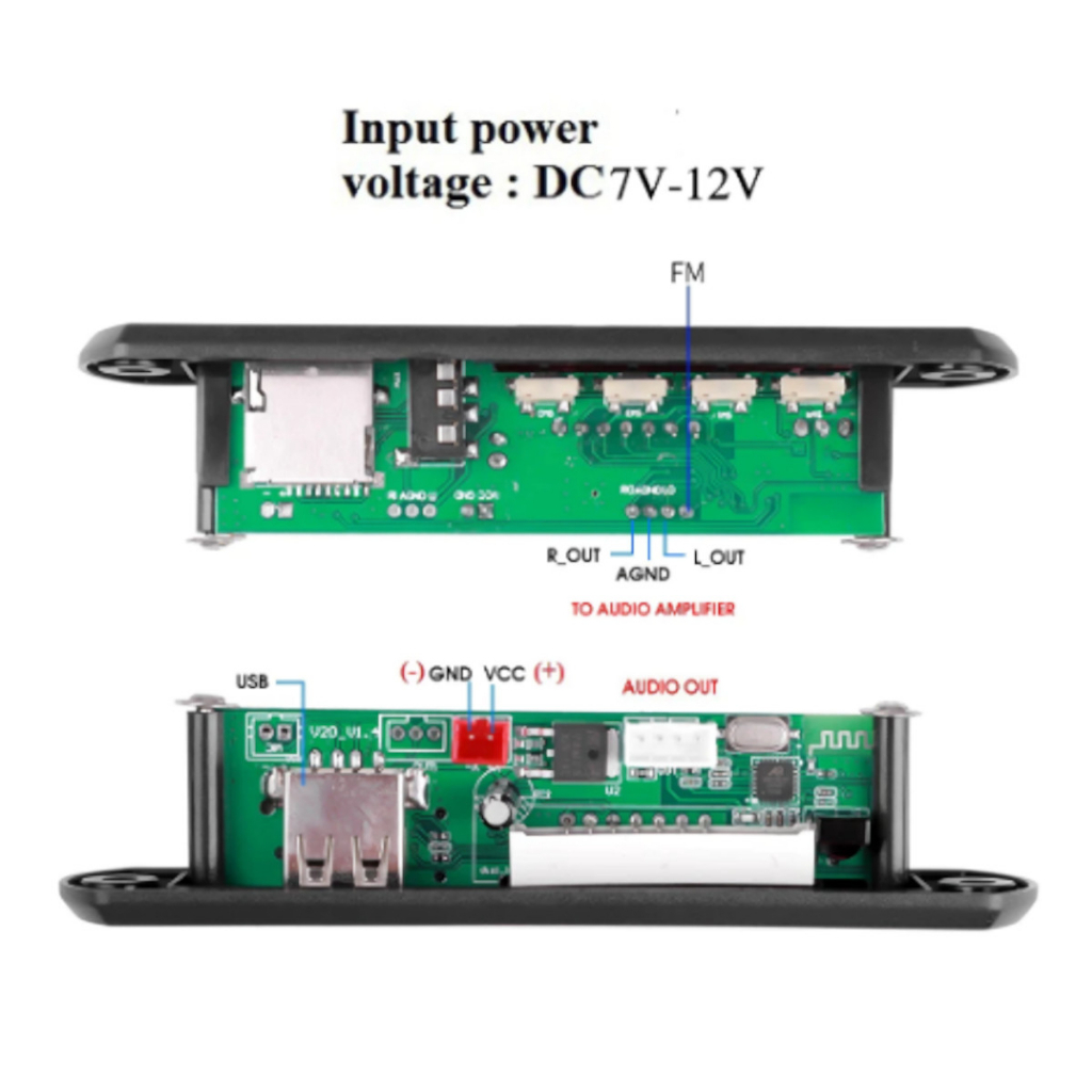 Placa Decodificadora Sem Fio Bluetooth 5.0 DC 12V MP3 WMA Módulo De Áudio USB TF Rádio