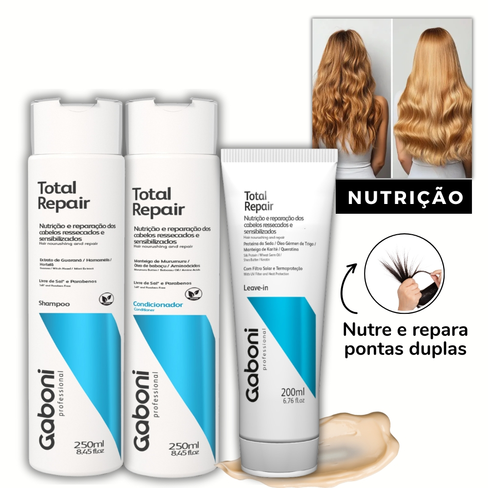 Kit Reparação e Nutrição Imediata Shampoo + Condicionador + Leave-in Sem Enxágue Total Repair