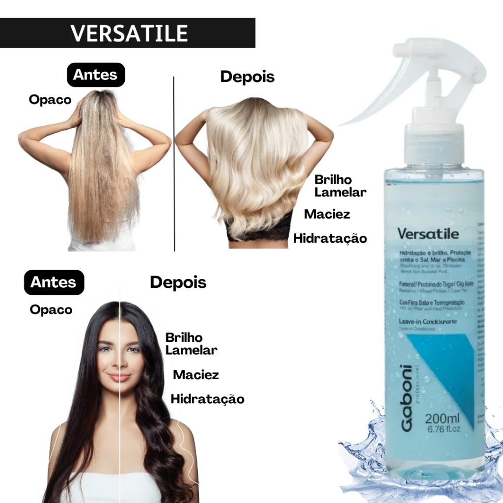 Leave-in Spray Versatile Gaboni Professional Protetor Térmico Multifuncional Brilho Espelhado 200ml