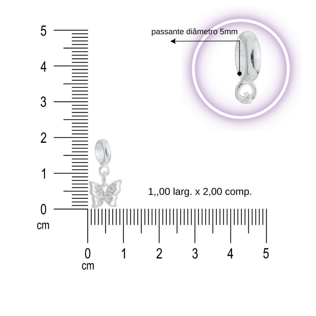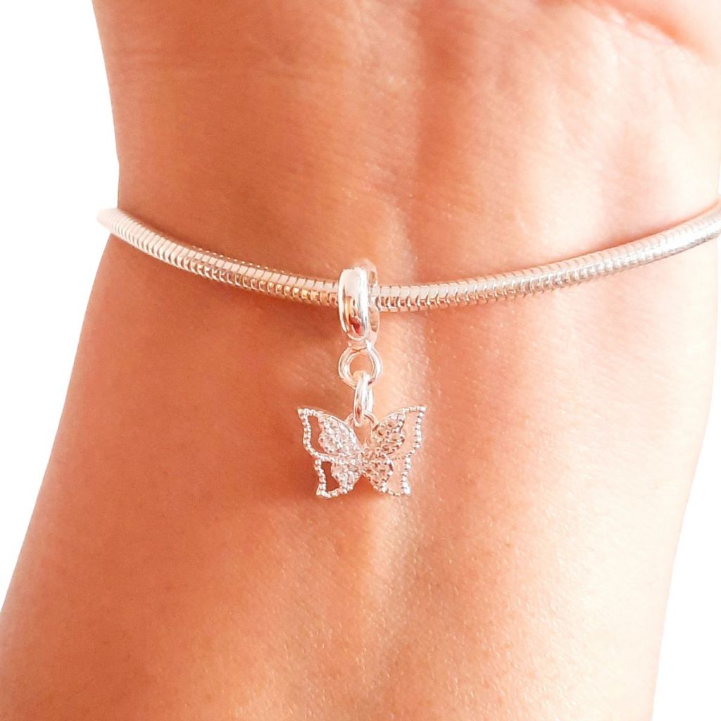 Berloque Borboleta Vazada Cravejada Zircônia Banhada à Prata