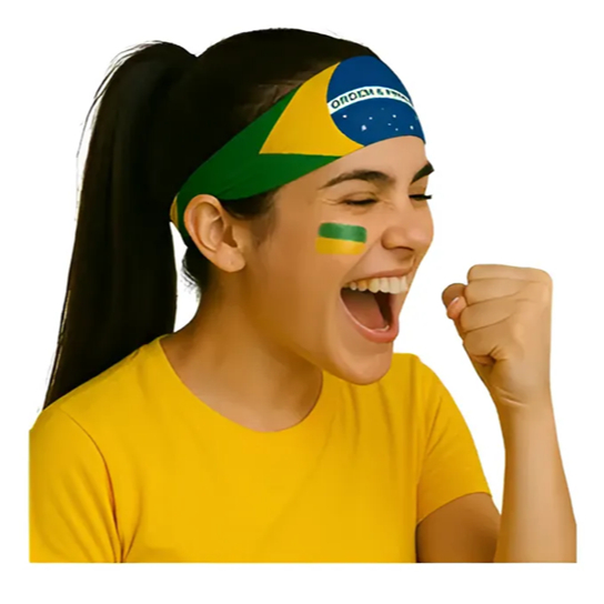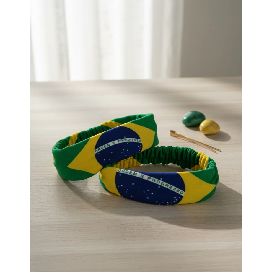 Kit C/ 2 Bandana Faixa Cabelo Elástica Brasil Copa Feminina