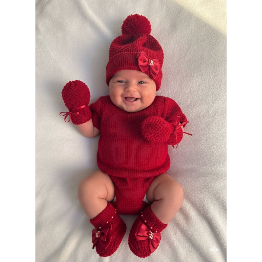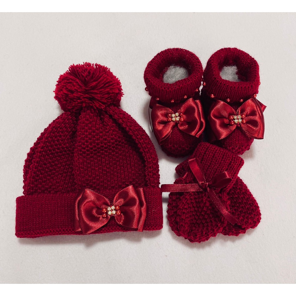 Kit Tricô Bebê RN - Touca, Luvas e Sapatinho/ Enxoval, Maternidade, Inverno, Saída Maternidade