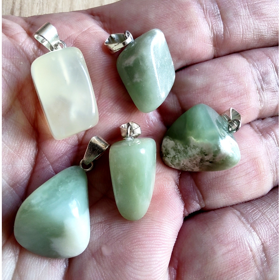 Pingente Jade Verde Rolado em Pedra Natural
