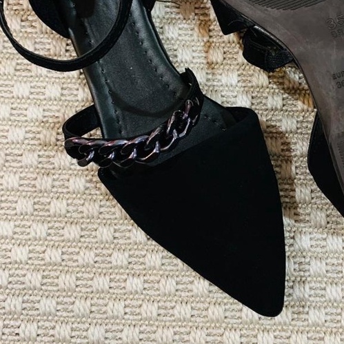 Sapatilha Feminina Sapatilia basica bico fino detalhe em corrente sapato Confortável Macio feminino